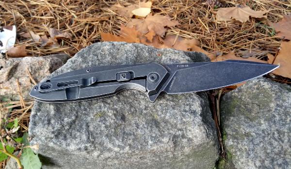 Этот нож имеет угловатые формы, целиком изготовлен из металла и окрашен в черный цвет, а его поверхность была обработана методом галтовки (Stonewash), которая придает матовости. Именно эти особенности создают неповторимый и довольно брутальный дизайн. Благодаря продуманности конструкции и качественной обработке (все углы сглажены, а фаски сняты), модель