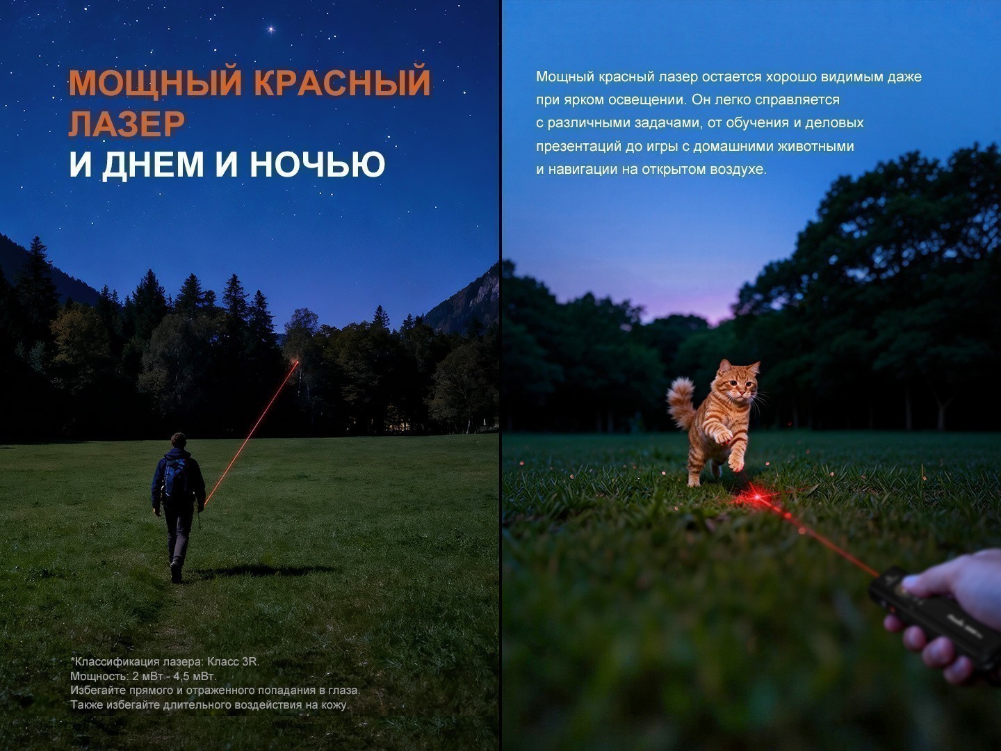 - Красный лазер — 650 нм 2-4,5 мВт