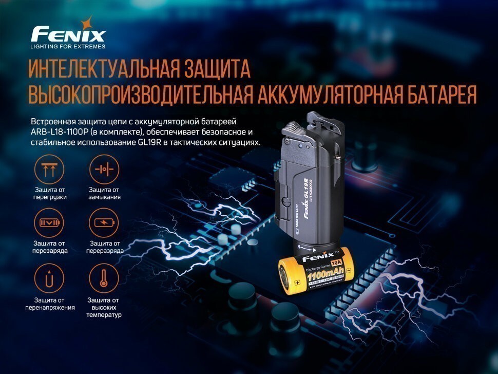 [~PREVIEW_TEXT] => Фонарь Fenix GL19R представляет собой мощную тактическую модель. Его максимальная яркость освещения достигает 1200 люменов, а дистанция луча – 210 метров. Особенности фонаря: улучшенная видимость и возможности прицеливания при стрельбе. Имеет компактные размеры, при этом, гарантирует замечательный световой поток. Его можно быстро прикрепить как к универсальной направляющей, так и к планке Пикатинни при помощи запатентованного рычага QD.