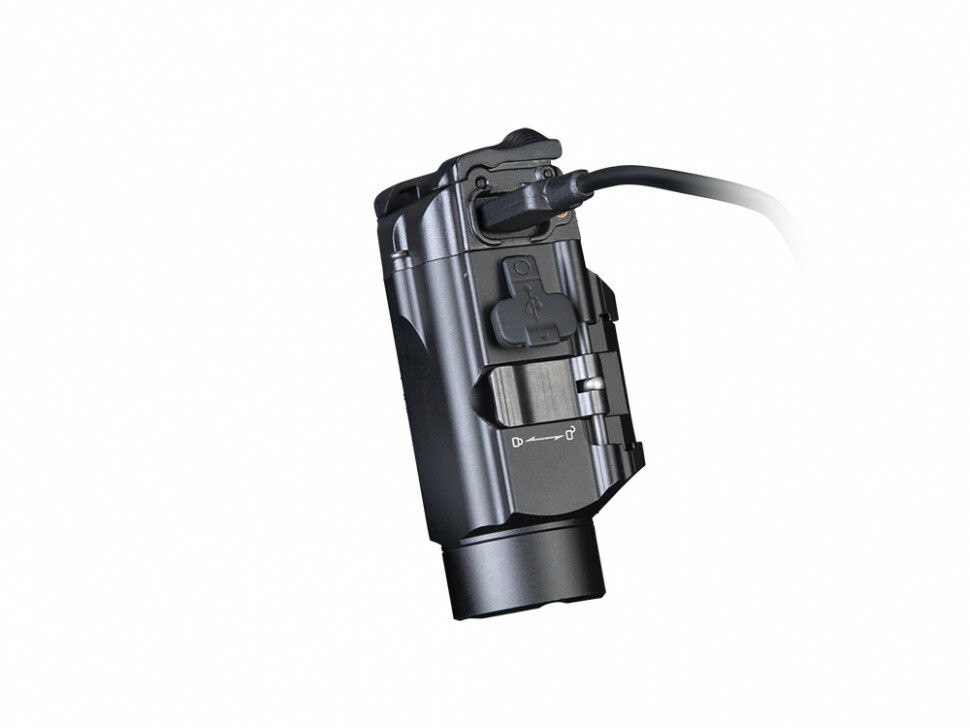 Здесь используется диод Luminus SFT40 со сроком службы 50 тысяч часов. Работает фонарь на литий-ионном аккумуляторе ARB-L18-1100P – эта батарейка представлена в комплектации. Зарядка происходит при помощи USB Type-C. Можно использовать для оружия с креплениями GLOCK и Пикатинни. Что важно – здесь даётся одинаково удобный доступ к кнопкам как для людей правшей, так и леворуких.