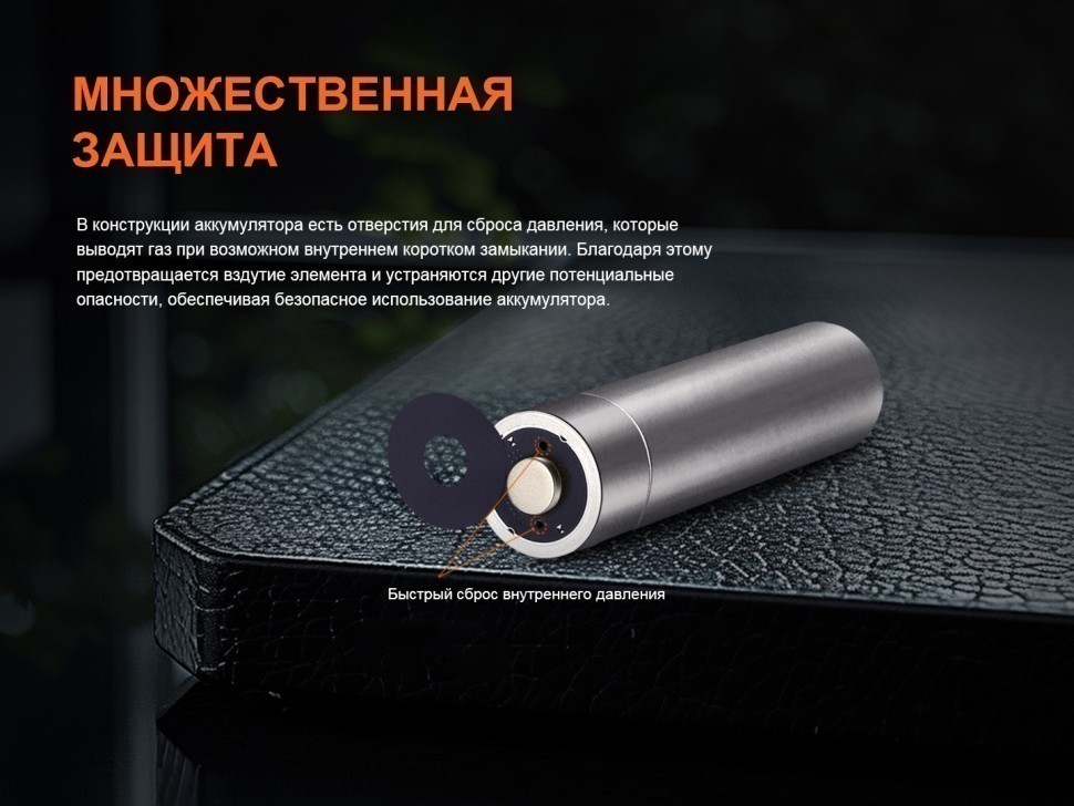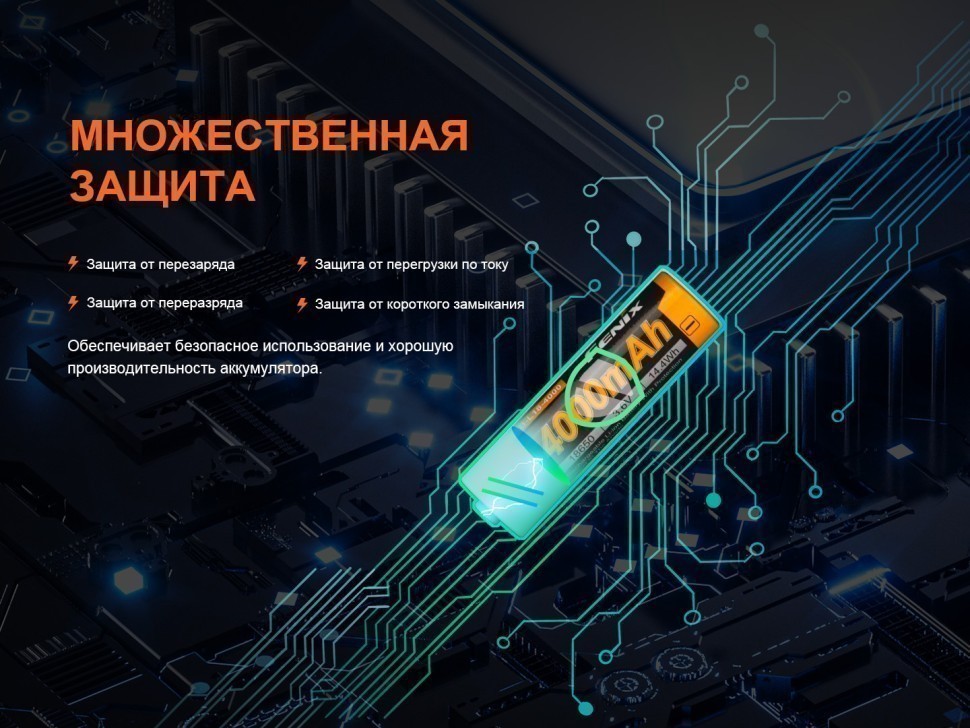 Многоуровневая система защиты обеспечивает безопасное использование и высокую производительность литий-ионного аккумулятора. Устройство обладает защитой от перезаряда, перегрузки по току, переразряда, короткого замыкания. Отсутствие в составе ртути и свинца сводит к минимуму негативное воздействие на окружающую среду.