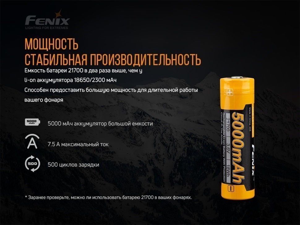Описание аккумулятора 21700 Fenix ARB-L21-5000: