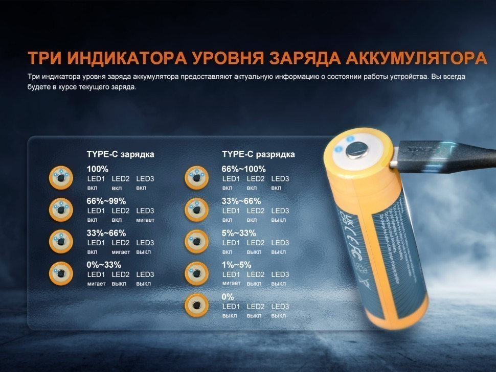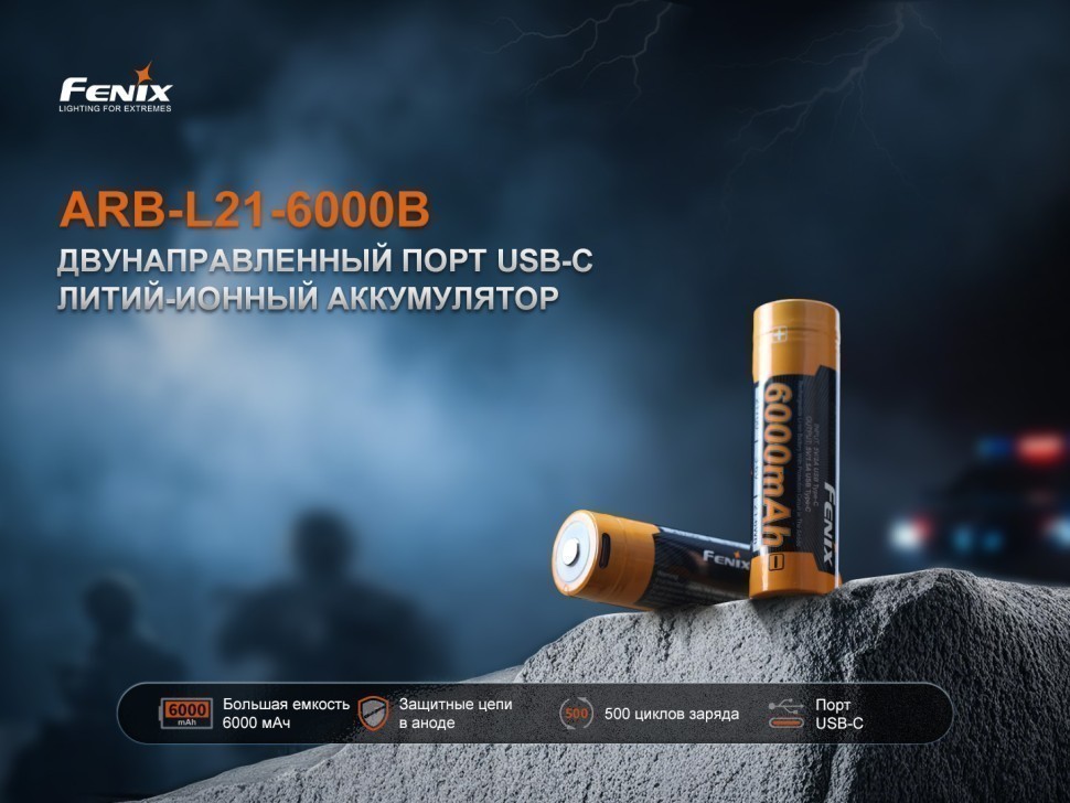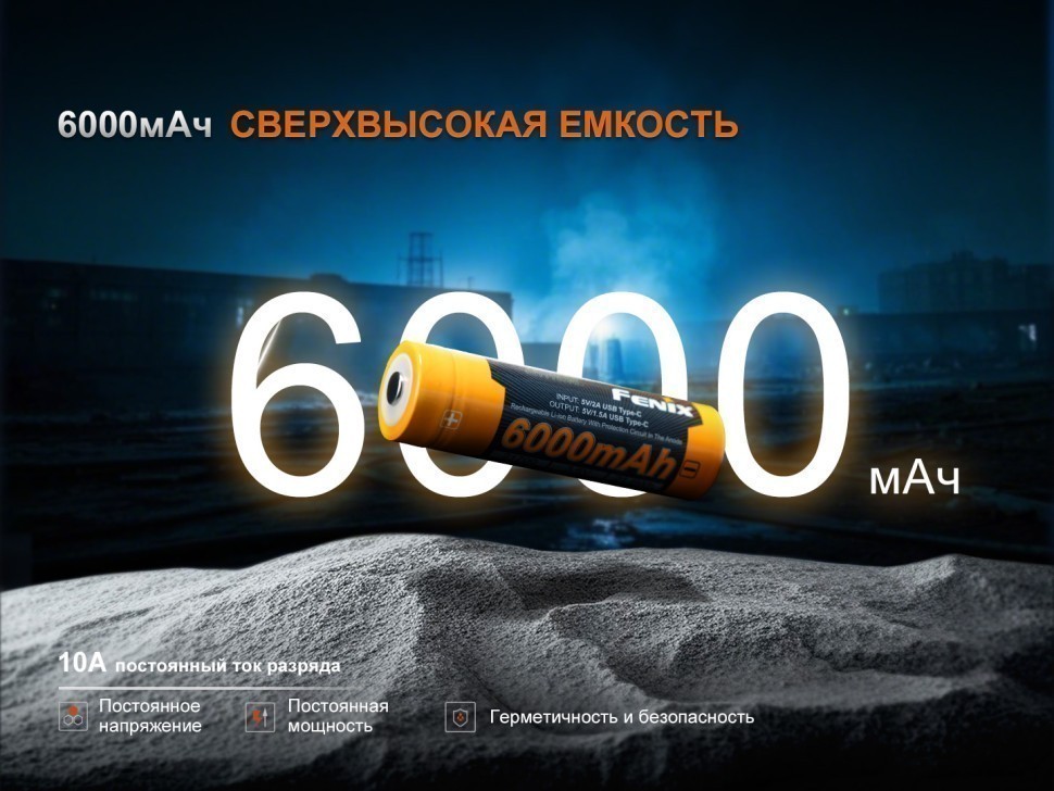Fenix 21700 ARB-L21-6000 — перезаряжаемый литий-ионный аккумулятор емкостью 6000 мАч. Это высокопроизводительный и безопасный источник питания с форм-фактором 21700, специально разработанный для фонарей Fenix, включая модели TK22R, HT18R, HT32, TK30R, LR36R, PD40R V3.0, PD36R V2.0, LD45R, LR35R Pro. Особенностью ARB-L21-6000B является встроенный двунаправленный порт USB TYpe-C. Такой разъем позволяет не только легко и удобно заряжать аккумулятор напрямую с помощью кабеля Type-C, но и использовать устройство в качестве внешнего аккумулятора для любого прибора. Мощный Powerbank емкостью 6000 мАч выручит в любой ситуации.