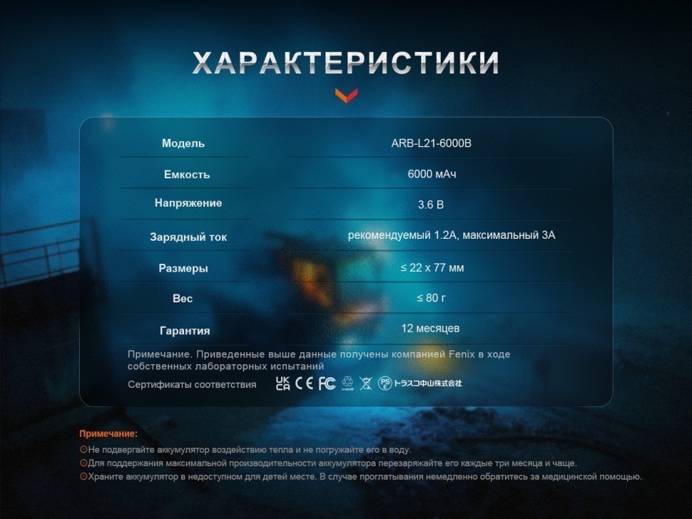 Аккумулятор обеспечивает экстремально длительную работу с сохранением стабильного напряжения. Модель ARB-L21-6000 способна выдавать максимальный ток до 10А и оснащена интегрированной защитой от перезаряда, переразряда, короткого замыкания.