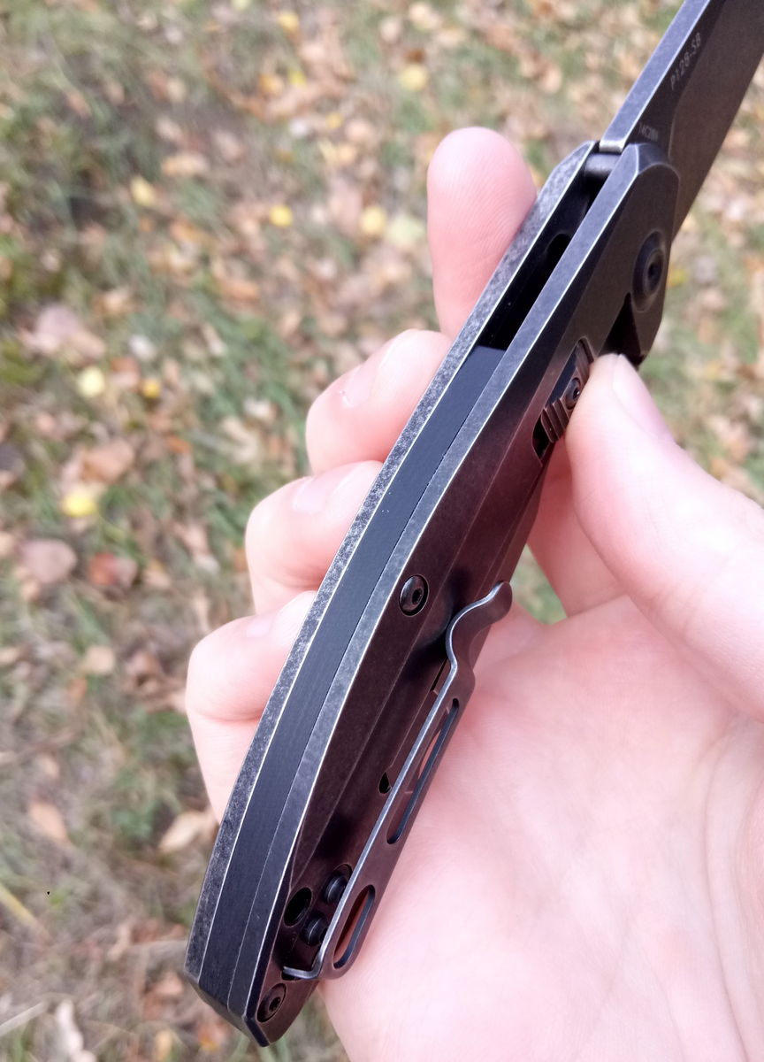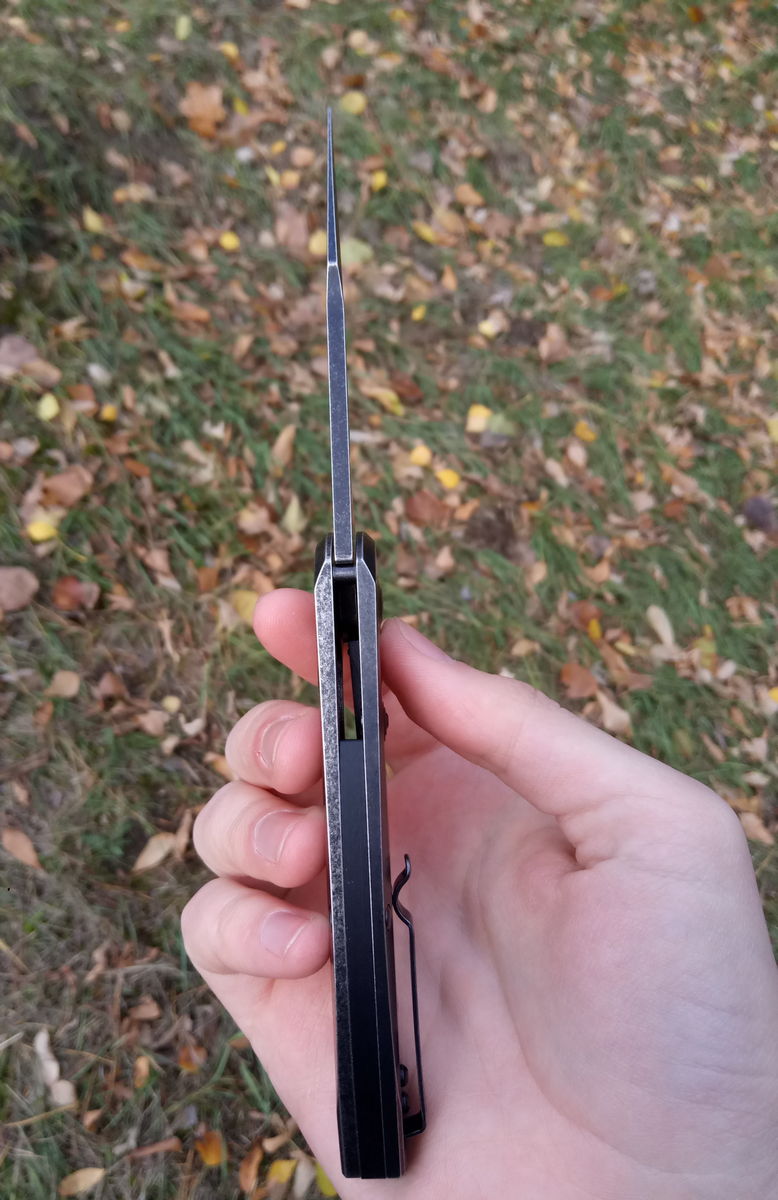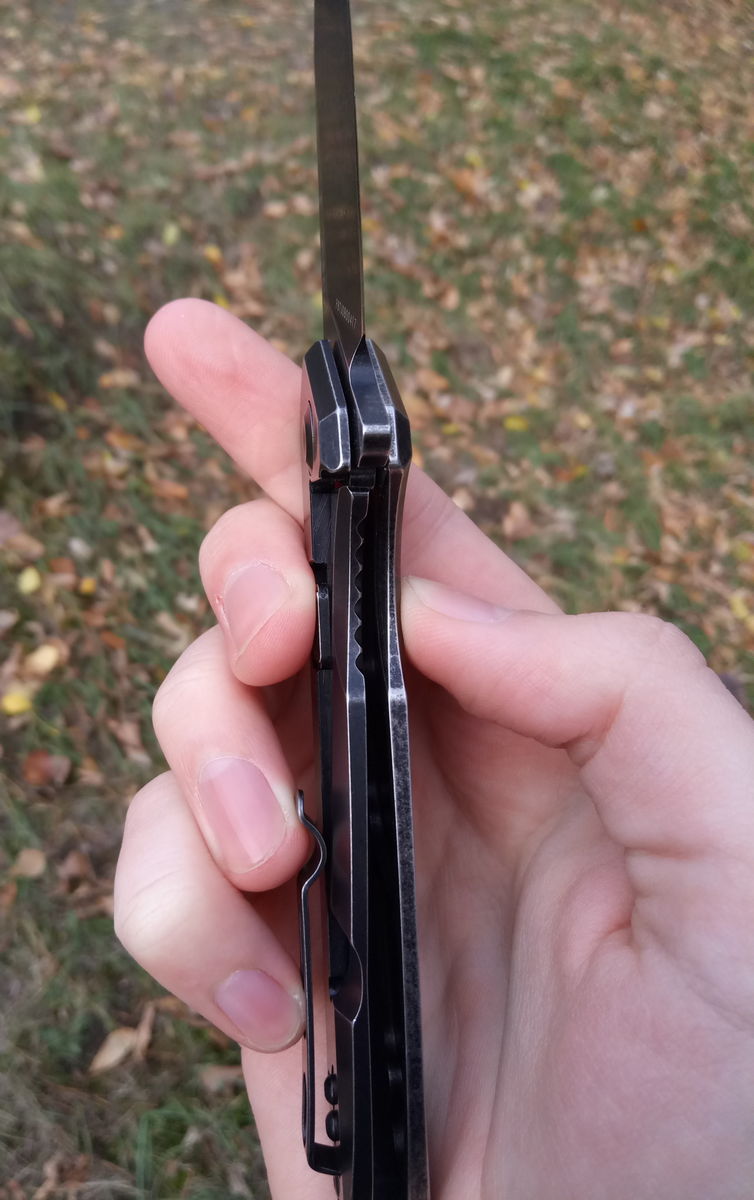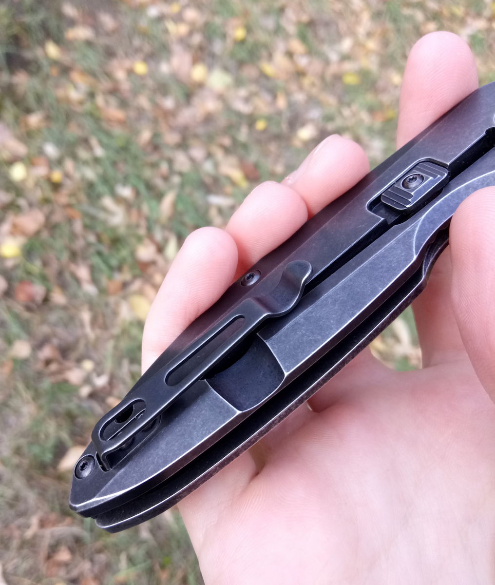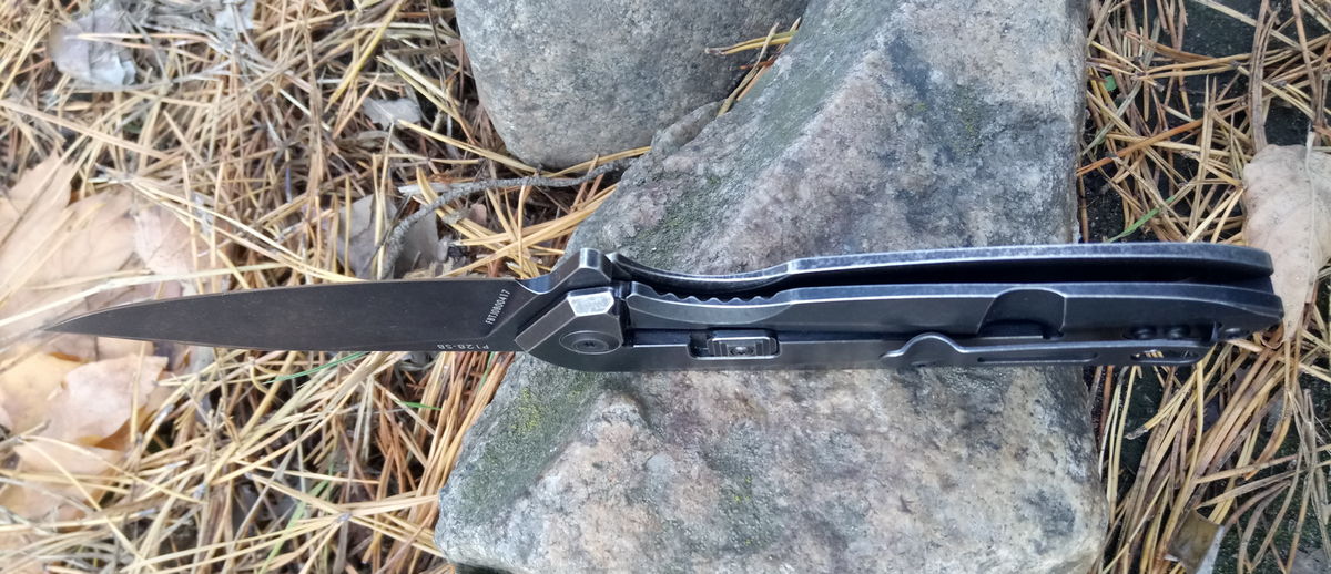 Приведение представленного ножа в «рабочее» положение производится с помощью специального плавника, так называемого флиппера. Наличие специальных подшипников вместо шайб позволяют с легкость открыть