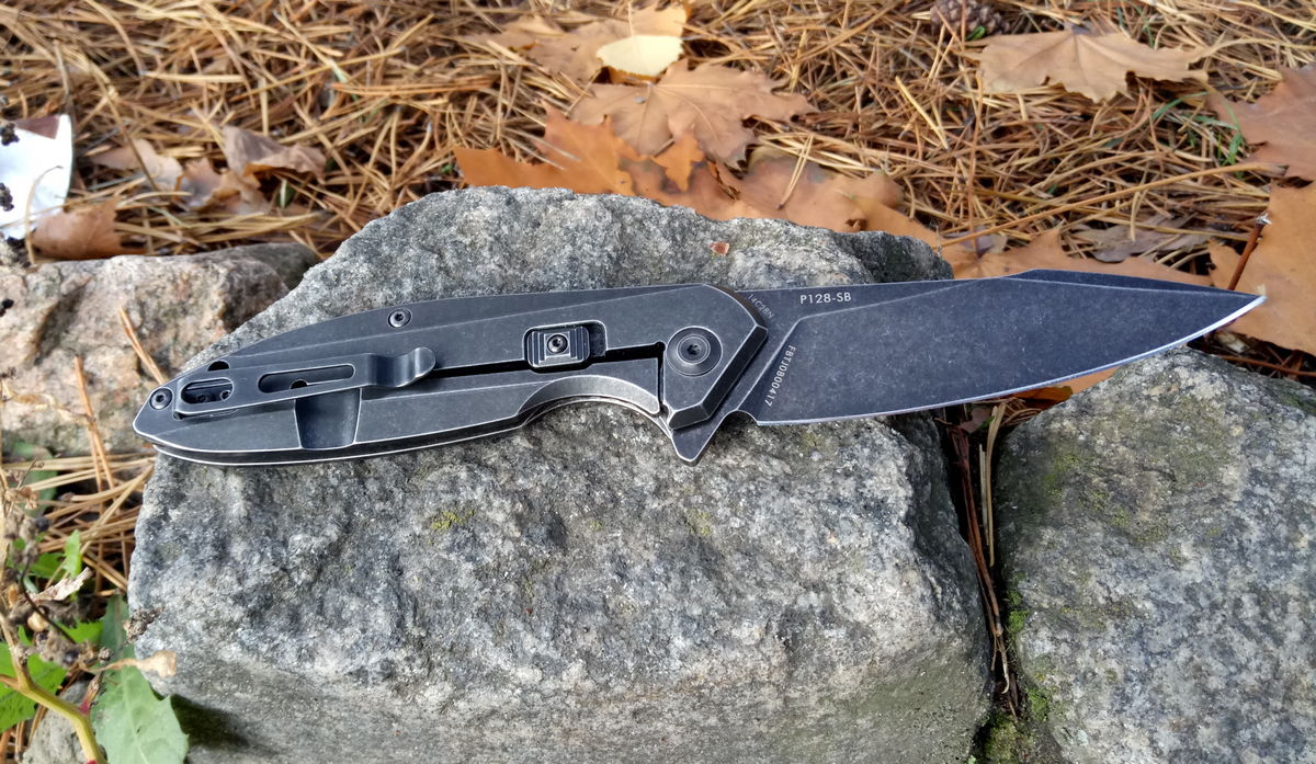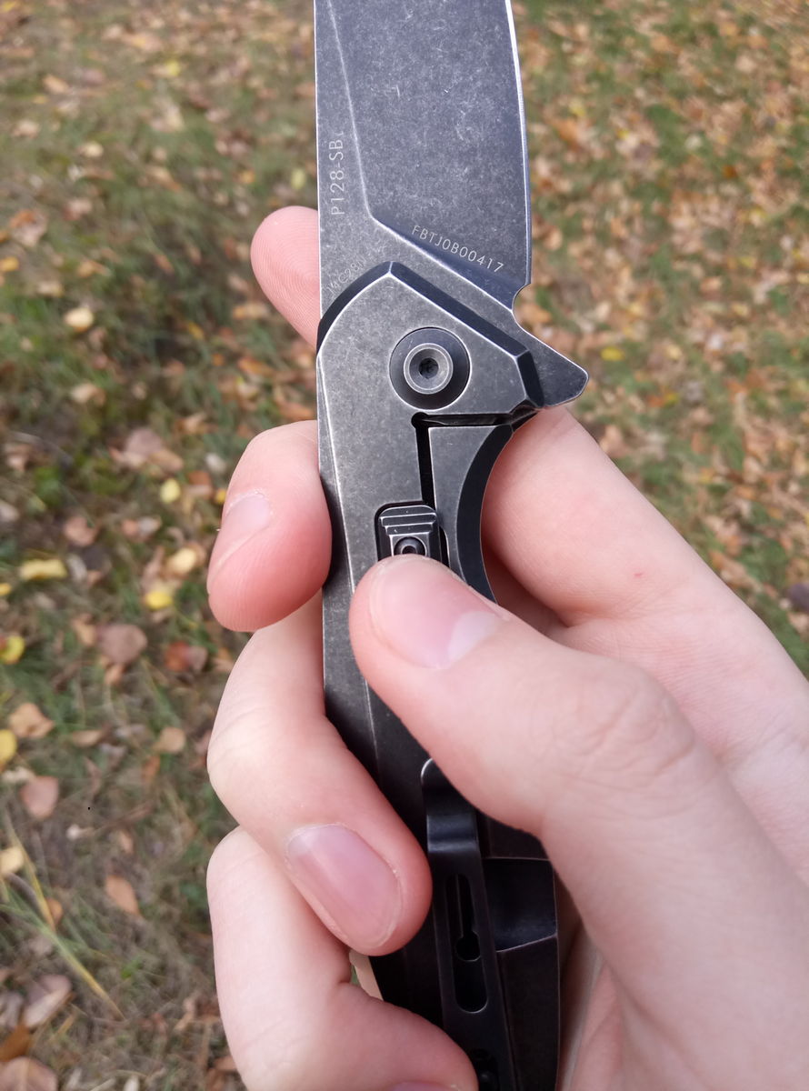 Ruike P128-SB одной рукой (как правой, так и левой). В «рабочем» положении нож фиксируется замком Frame-lock. На данный момент, это один из самых простых и надежных механизмов блокировки клинка, который очень удобен как в эксплуатации, так и в обслуживании.