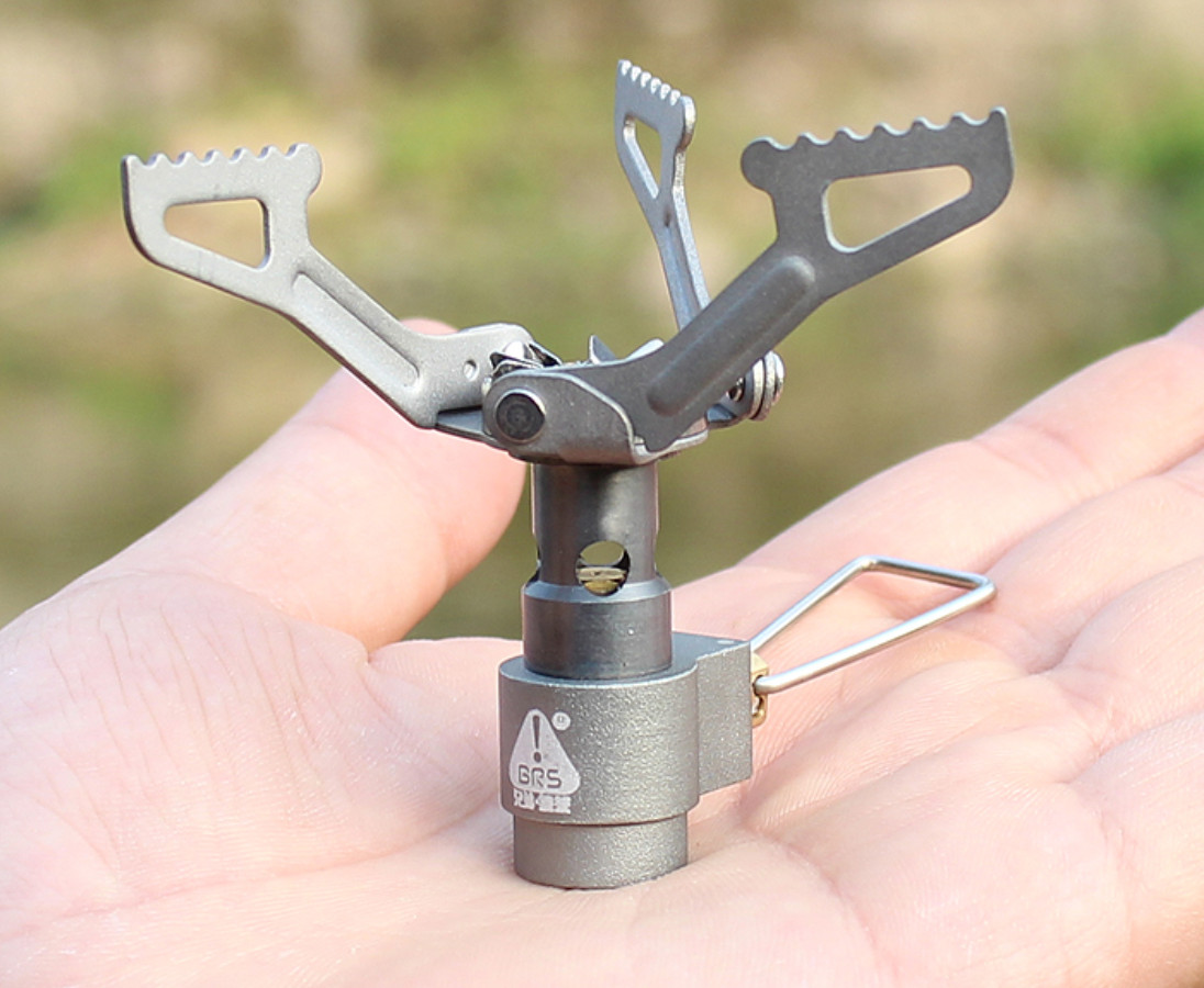 И так, открывает нашу подборку титановая газовая горелка BRS 3000T. Несмотря на то, что горелка умещается в ладошке 5-летнего ребенка, она выдает пламя мощностью 1940 Вт. В размерах устройство не превышает 3,7 x 5,2 сантиметров и весит всего 25 грамм, поэтому поместится даже в поясной сумке, что говорить о рюкзаке. Некоторые владельцы BRS 3000T писали, что горелка размером с большой палец. Литр воды закипает чуть медленнее, чем у других моделей в нашей подборке — 8 минут 45 секунд, но это издержки небольших размеров и выбора в пользу более экологичного топлива.