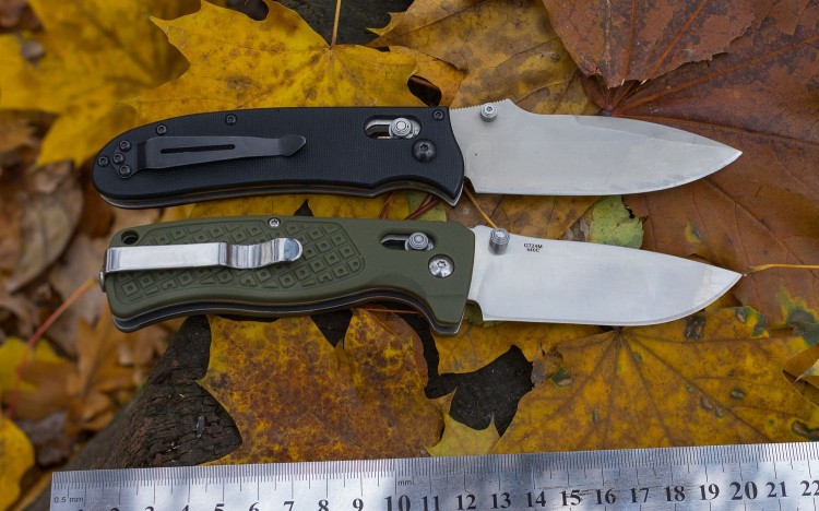 При этом, она приобрела несколько положительных моментов: появилась более плавная, но вполне удачная насечка на обухе и тыльной стороне рукояти для упора большого пальца. На оси клинка установлены латунные шайбы.