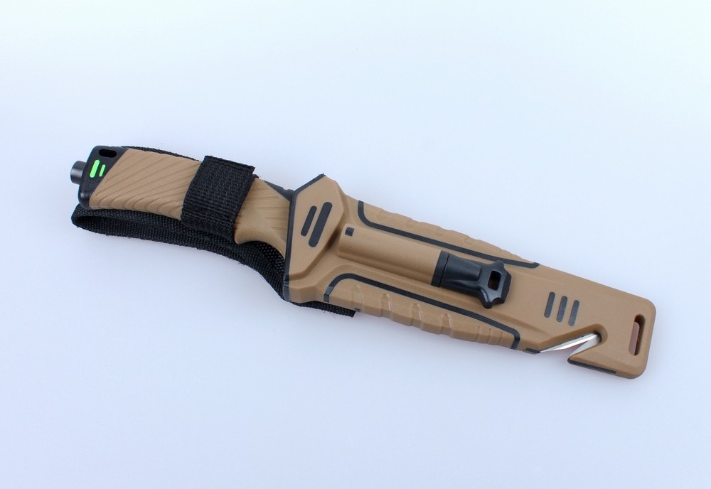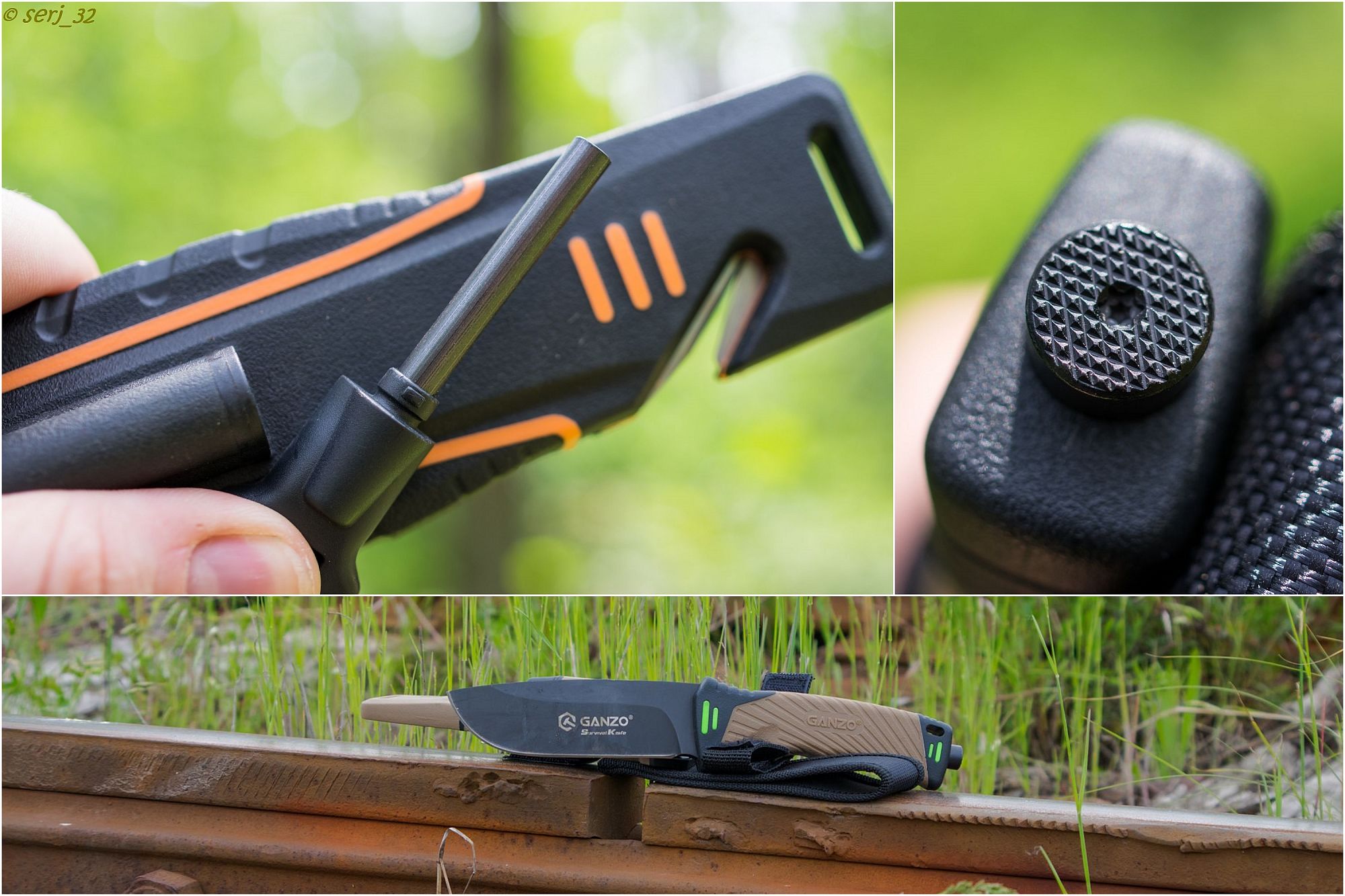 На ножнах есть огниво, позволяющее высекать искру. На обухе ножа предусмотрена проточка для того, что бы нею высекать искру. Огниво, идущее в комплекте, дает хорошую искру. В своем гнезде огниво держится очень хорошо, а при необходимости, у огнива есть отверстие для темляка.