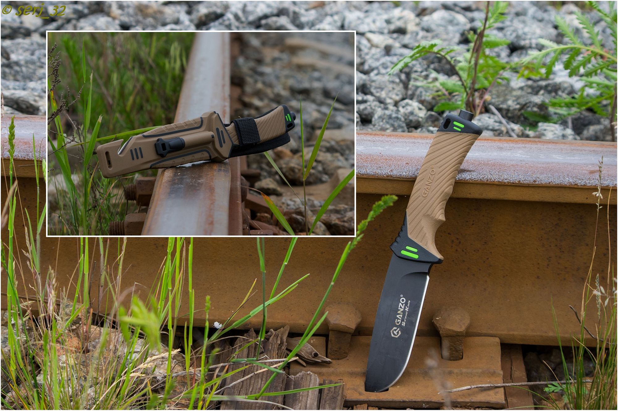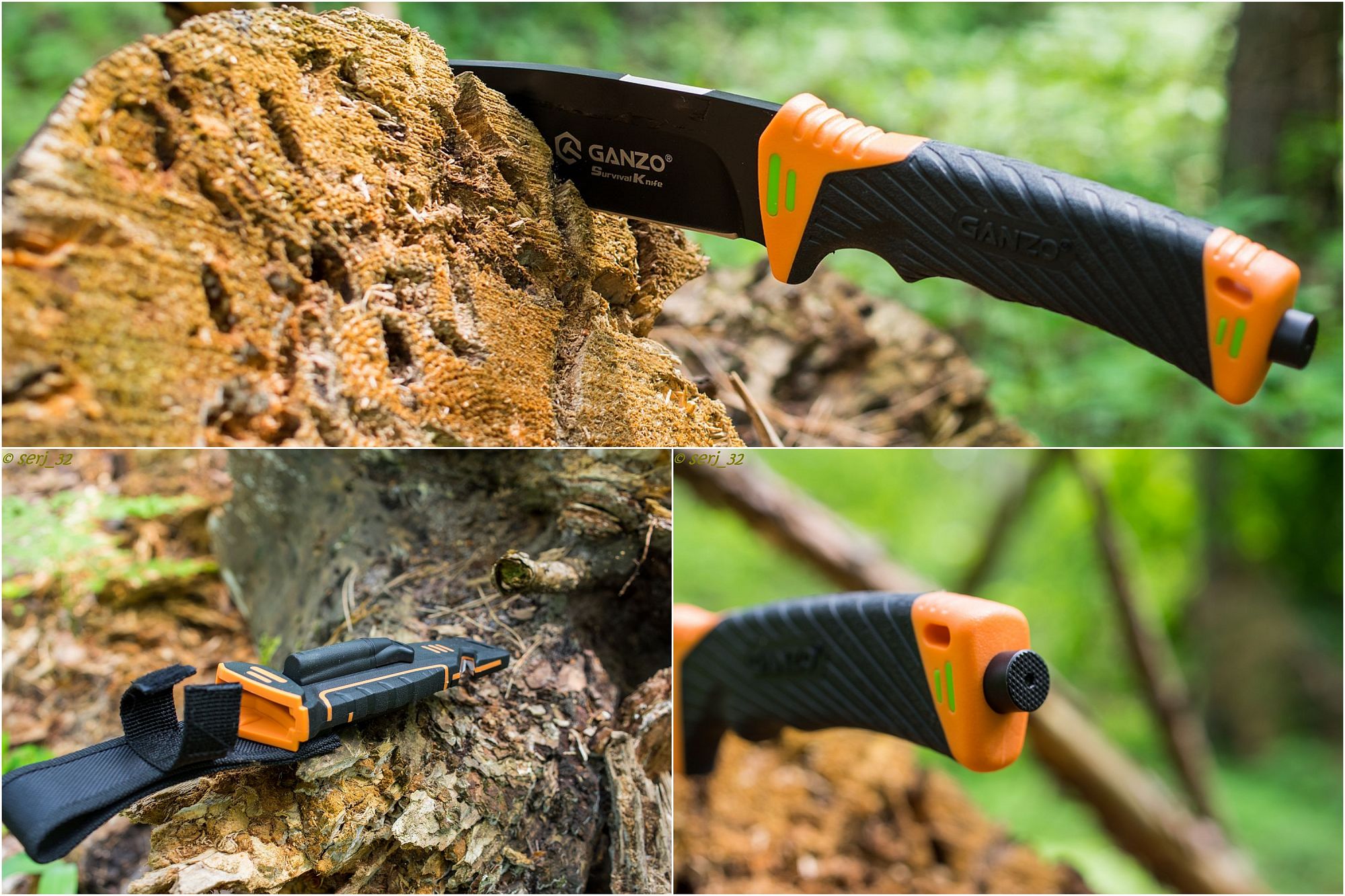 При работе ножом, рукоять очень хорошо ложится в руку. Сразу ощущается вес и массивность. Вес Ganzo G8012 позволяет рубить ветки гораздо лучше, чем другим ножам. При резе, нож также показывает неплохой результат. Заточка из коробки не очень порадовала - бумагу на весу нож не резал. Но дерево строгал весьма охотно, причем, даже лучше, чем можно ожидать от ножа с таким массивным обухом. Конструкция ножа и его массивность позволяет "батонить", колоть дрова и даже немного копать землю.