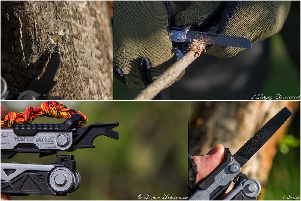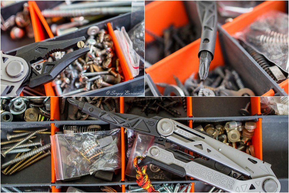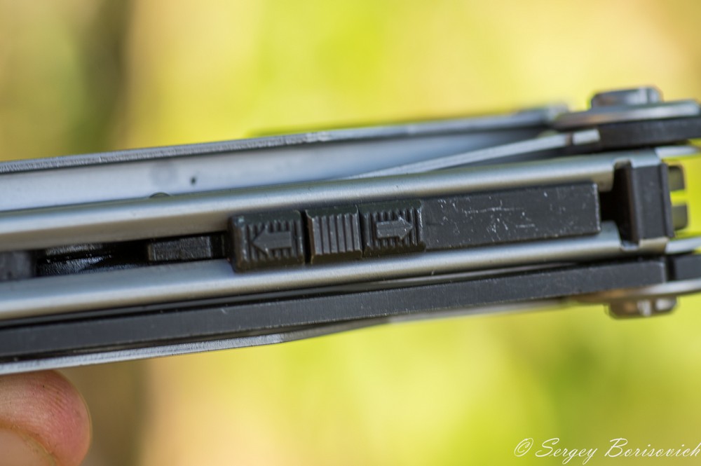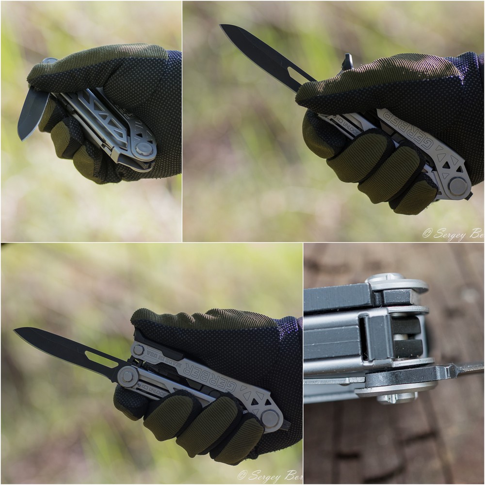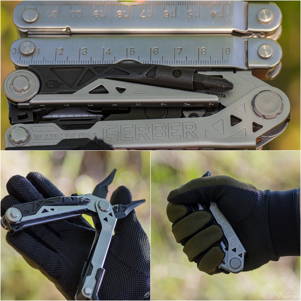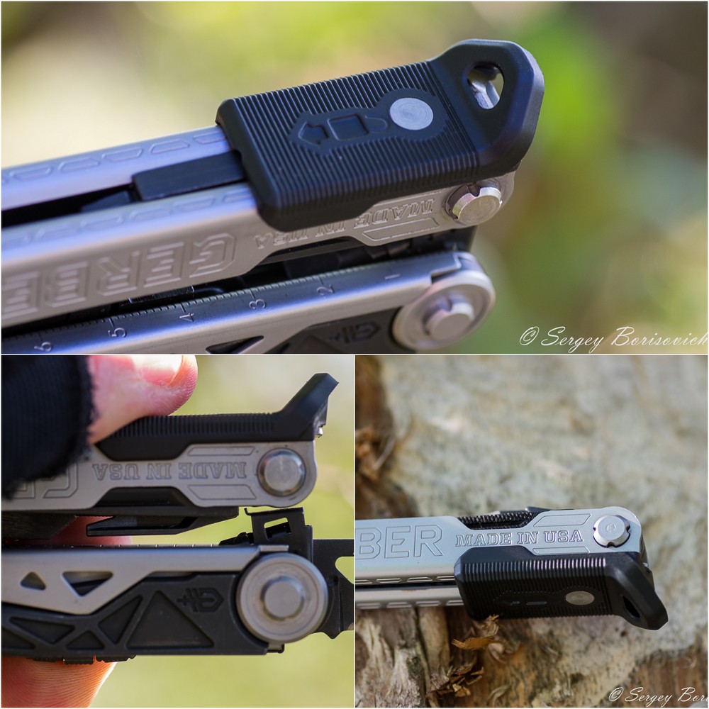 С открытием и складыванием инструмента в этой рукояти несколько сложно: вначале надо открыть плоскогубцы, потом открыть нужный инструмент и сложить обратно плоскогубцы. Для закрытия - те же действия в обратном порядке. Но видно, Gerber считает, что эта группа инструментов второстепенна, потому он не заморачивался с ее доступом для однорукого открытия.