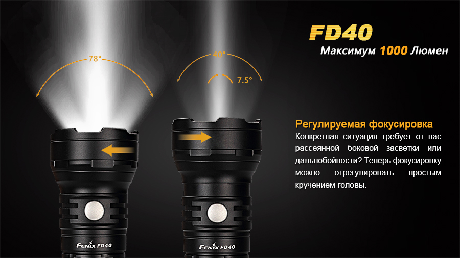 Теперь можно уже с точностью говорить, что компания Fenix каждому пользователю предоставляет тот фонарь, который ему необходим. Модель Fenix FD40 открыла новую серию — с возможностью вручную регулировать фокусное расстояние луча. Это значит, что, имея в кармане один небольшой фонарь, вы без труда осветите и дальнее пространство, и близлежащую территорию.