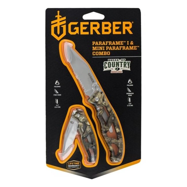 Большое количество ножей имеют не только ножеманы, которые при любой удобной возможности пополняют свою коллекцию. Иногда наличие более одного клинка просто необходимо, учитывая особенности их назначения. Например, две разные модели представлены в комплекте от Gerber: Gerber Paraframe Combo и Mossy Oak.