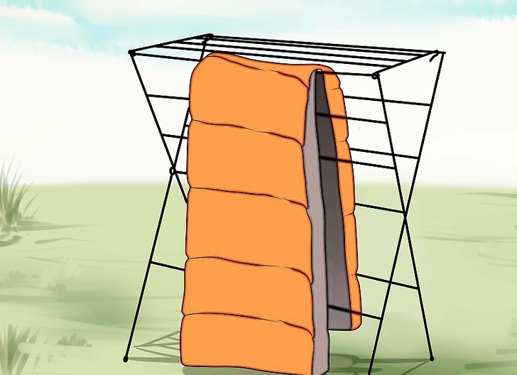 Сушку лучше выполнять на свежем воздухе, но от прямых солнечных лучей его всё-таки стоит оберегать. Все застёжки перед началом следует открыть. Очень желательно, чтобы сначала спальный мешок был в горизонтальном положении. Это будет способствовать тому, чтобы наполнитель не распределился неравномерно. Когда вся вода полностью стечёт, то сушку можно продолжить уже в любом положении, но несколько раз в день мешок следует стряхивать и переворачивать.