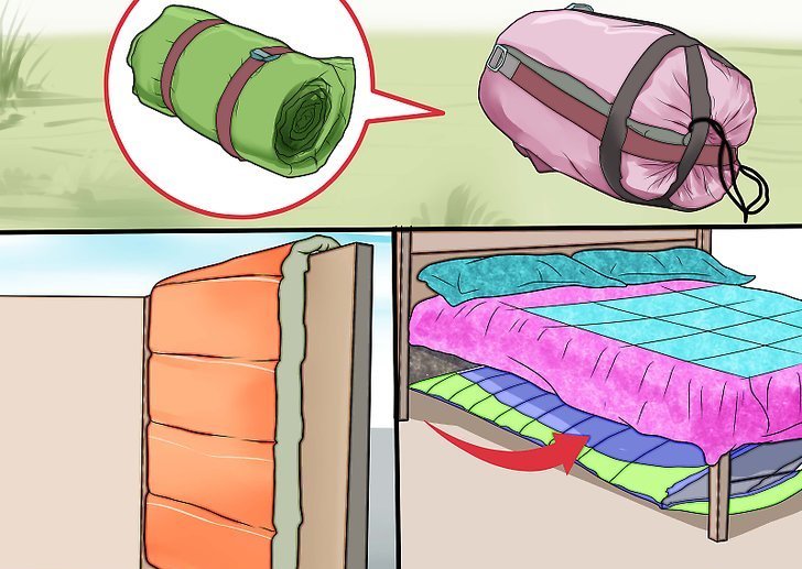 Отличная альтернативная ёмкость – наволочка от большой подушки. Если нет даже такого, то можно попробовать проявить изобретательность и поискать в своём доме места, где можно разместить спальный мешок.