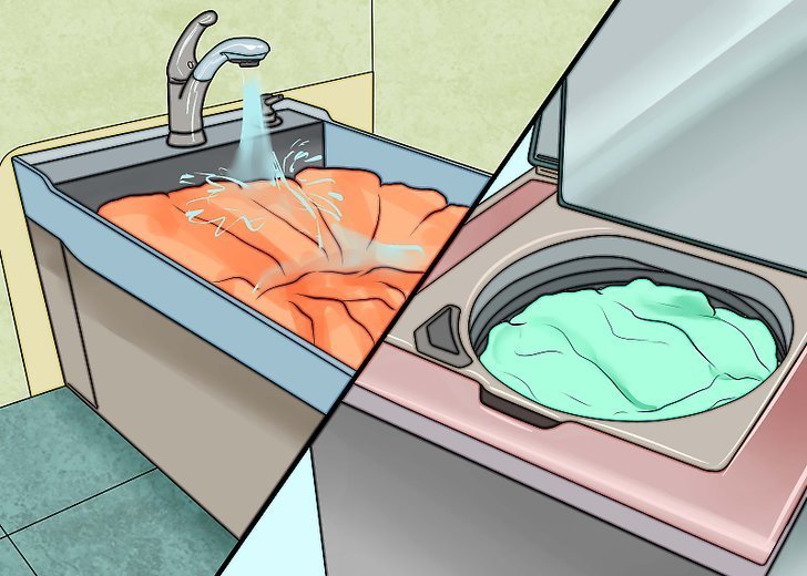 Вариант стирки в стиральной машинке – более удобный. Но сама машинка должна быть с достаточно большим барабаном и возможным весом загрузки. Лучший вариант – машины промышленного типа, которые устанавливают в прачечных с самообслуживанием. Устанавливать необходимо деликатную стирку, температуру следует выставить на 30°C, а скорость отжима снизить до минимальной (обычно – 500 оборотов в минуту). Также следует включить опцию «дополнительное полоскание».