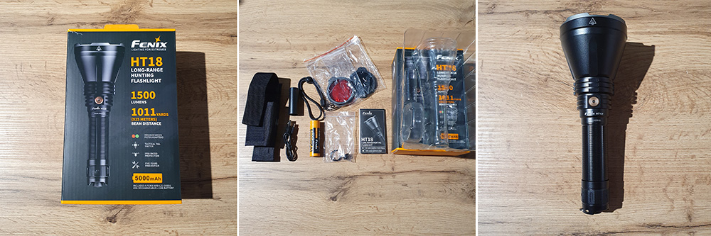Набор в себя включает: модель Fenix HT18, аккумулятор, кабель для зарядки USB Type-C, переходник ALF-18, красный фильтр, зелёный фильтр, чехол с регулировкой длины, ремешок на руку, запасное уплотнительное кольцо, запасную резиновую накладку на кнопку, руководство пользователя, талон гарантии.