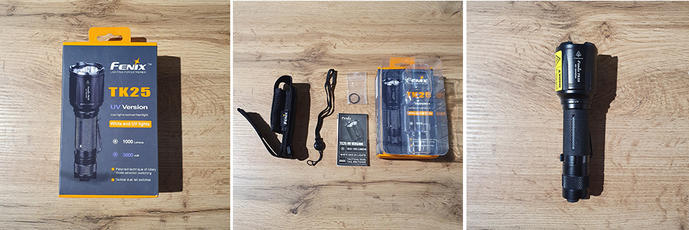 Набор включает в себя: саму модель фонаря TK25UV, ремешок для руки, прижимную клипсу на корпус, чехол, запасное кольцо для уплотнения стыков корпуса, инструкцию пользователя, а также талон гарантии.