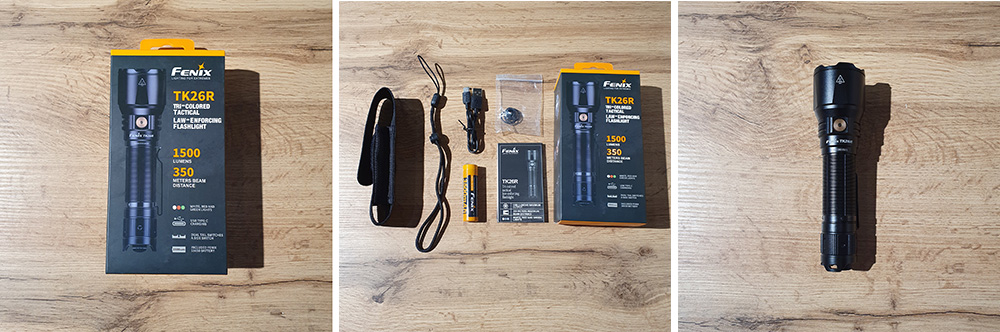 В набор включены: модель фонаря TK26R, батарея Fenix ARB-L18-3500, кабель USB Type-C, кабель для зарядки, ремешок на руку, чехол, запасное уплотнительное кольцо, резиновая накладка на кнопку, руководство пользователя, гарантийный талон.