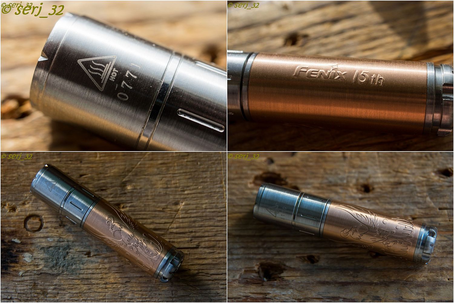 Этот фонарь - лимитированной серии, поэтому каждый будет иметь свой уникальный номер. Правда серия не такая уж и маленькая судя по разрядности серийных номеров. Иногда компания выпускала модели с корпусами из титана, но в этот раз используется просто полированная нержавеющая сталь. Она конечно тяжелее, но зато на ней в меньшей мере видны микроцарапины и теплопроводность у нее лучше, что важно для теплоотвода светодиода.