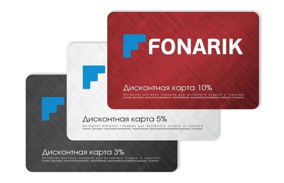 Дисконтная карта является накопительной, процент скидки зависит от суммы всех заказов, оформленных в наших магазинах и действует на постоянной основе.