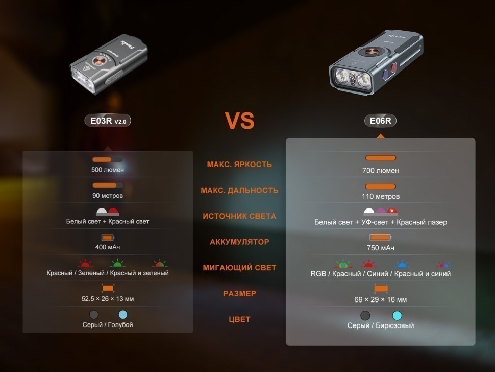 - комплектация — фонарь Fenix E06R, кабель USB Type-C, темляк, кольцо для брелка, руководство пользователя, гарантийный талон;