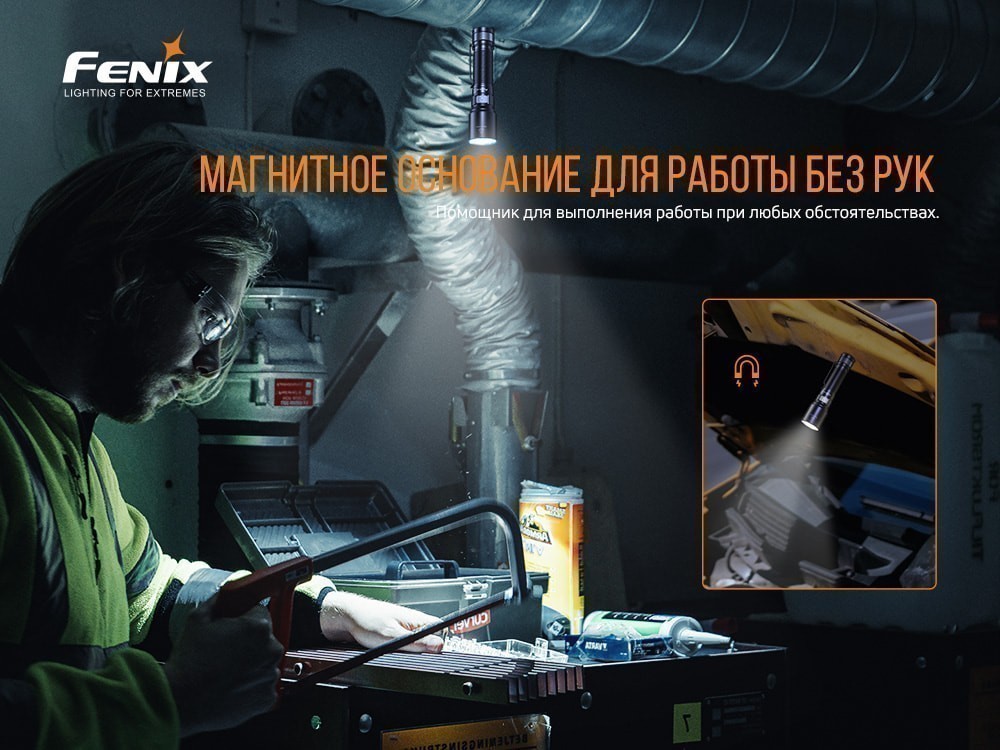 Постоянная яркость освещения поддерживается за счёт функции цифровой регулировки. Линза из закалённого сверхпрозрачного стекла с антибликовым покрытием даёт качественный свет пользователю. Всего в фонаре предусмотрены шесть режимов свечения. Управляется модель через кнопку, а магнитное крепление фонаря служит для освобождения рук владельца при работе с моделью. Также предусмотрена функция индикации степени заряженности и предупреждение о низком напряжении.
