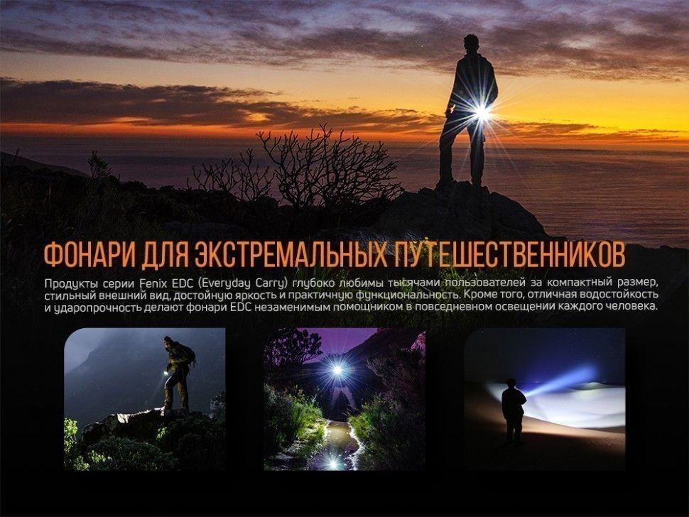 | Комплектация | Фонарь Fenix E09R, кабель для зарядки USB Type-C, кольцона ключи, запасное уплотнительное кольцо, инструкция,гарантийный талон. | ||||||