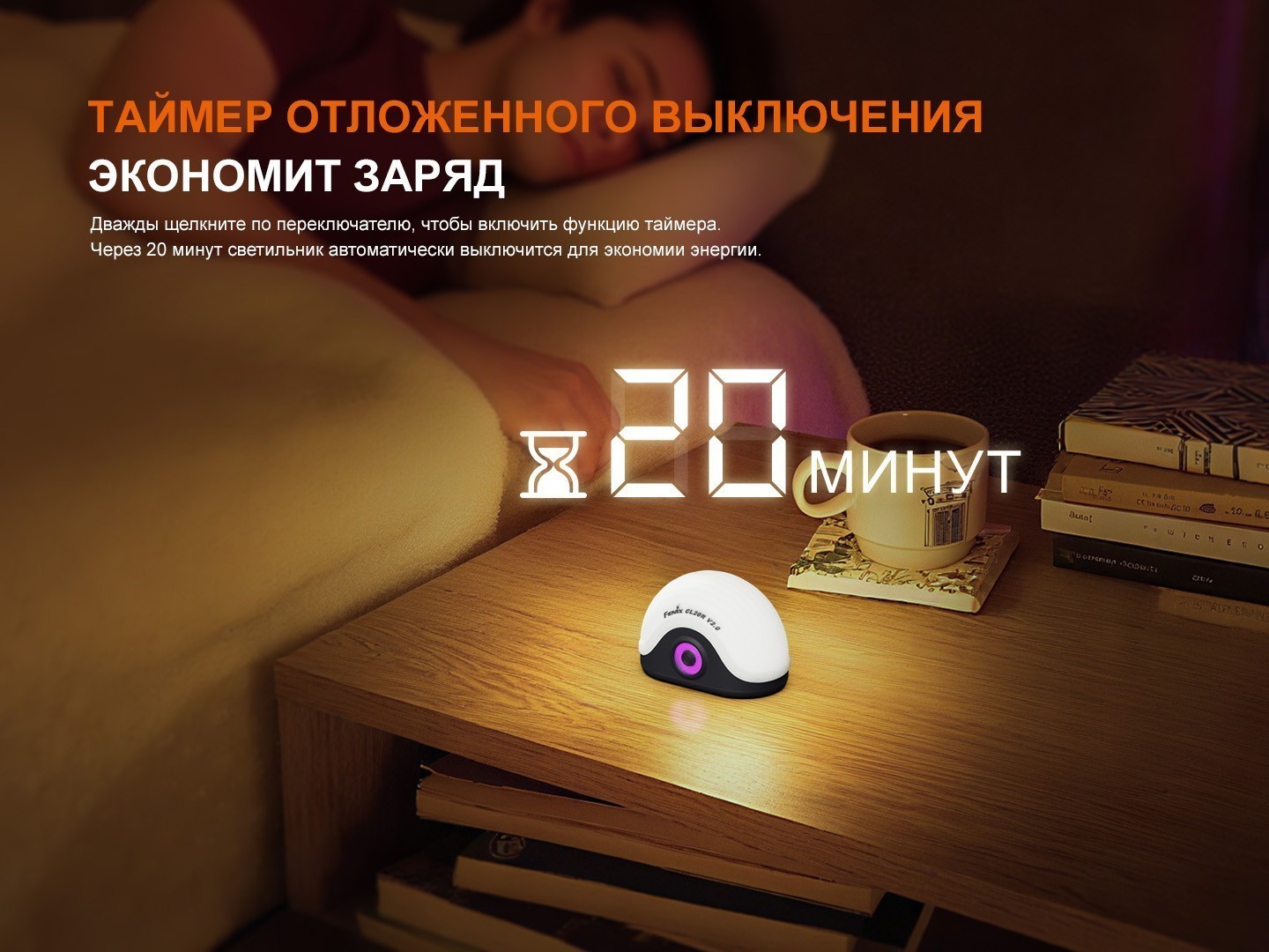 - Функция таймера для автоотключения через 20 минут;
