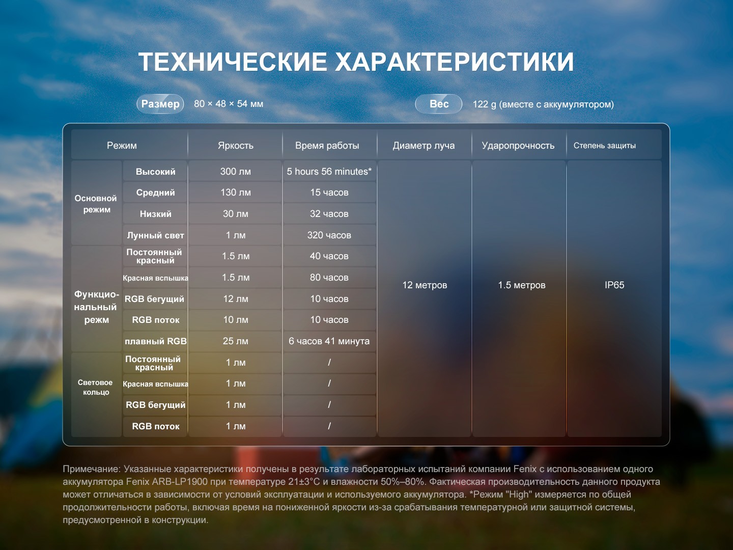 | Элементы питания | Взрывозащищенный аккумулятор Fenix ARB-LP1900 | ||||||||||||