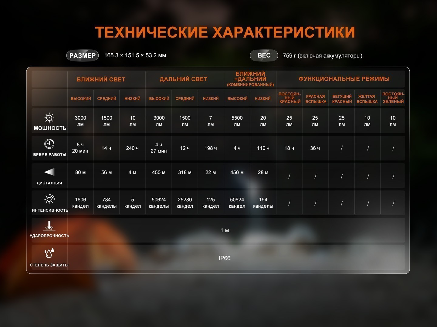 | Элементы питания | Аккумулятор Fenix ARB-L21-6000 емкостью 6000 мАч (формат 21700) | ||||||||||||