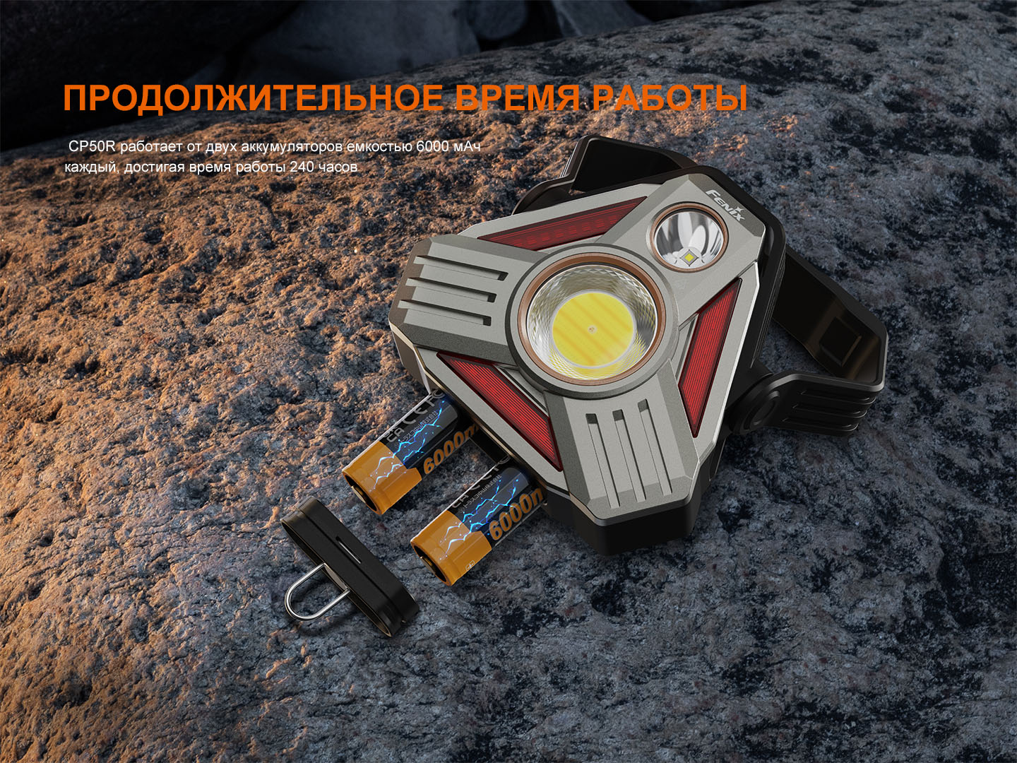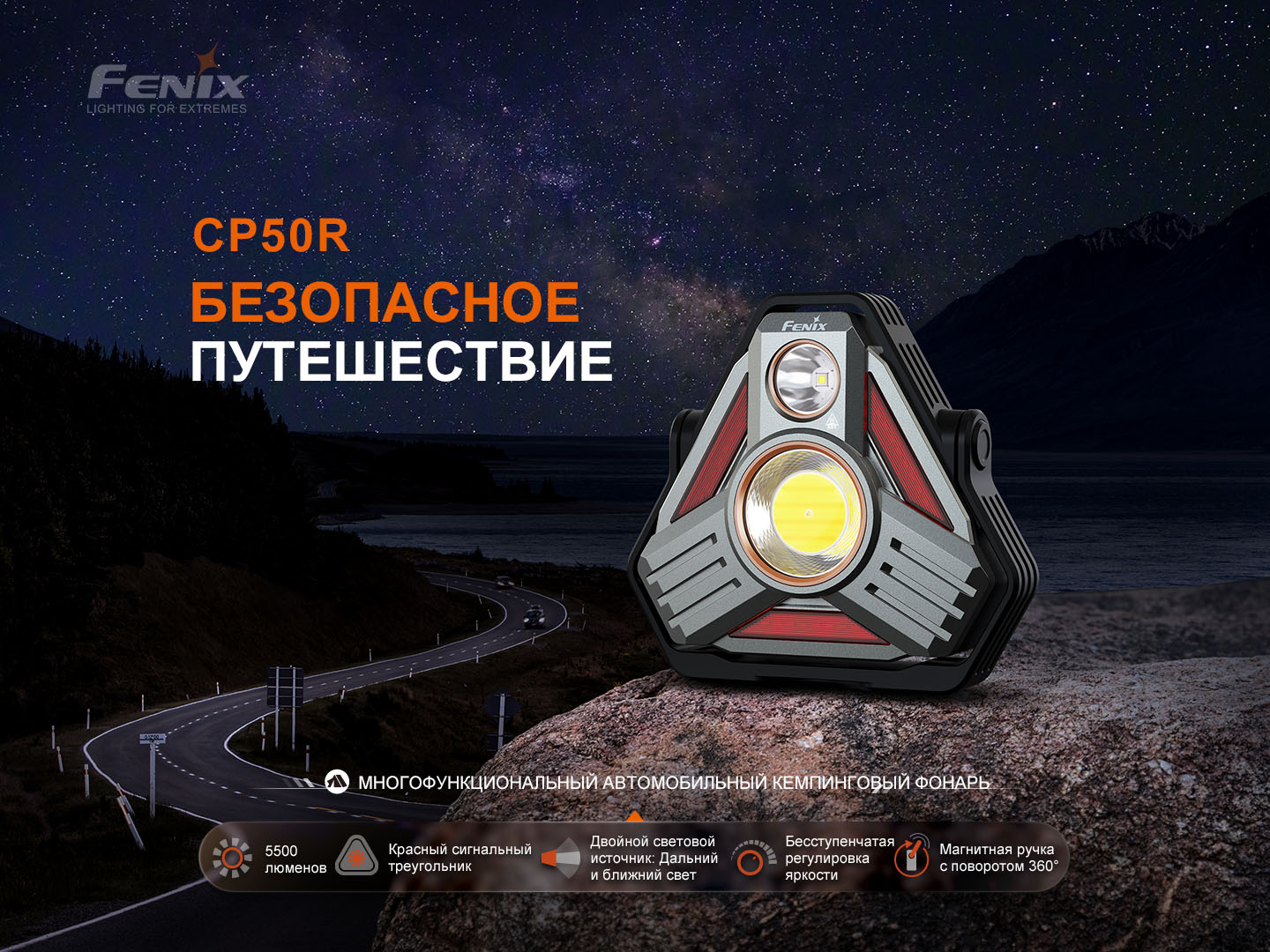 Fenix CP50R - первая модель новой профессиональной серии CP, созданная как гибрид кемпингового и индустриального фонаря. Несмотря на родство с моделями Fenix CL27R и CL28R, этот многофункциональный фонарь ориентирован прежде всего на автомобилистов: для аварийных ситуаций на дороге, обозначения своего авто, ремонта и освещения большой площади вокруг машины. Также фонарь идеально подойдет строителям, монтажникам, рабочим и специалистам по обслуживанию, которым необходим яркий, надежный и долговечный инструмент.