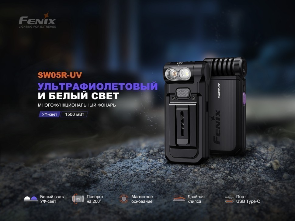 Fenix SW05R-UV — это Универсальные инструмент, который станет незаменимым помощником для правоохранительных органов, работников сферы безопасности, хозяев домашних животных, а также для туристов и любителей активного отдыха.