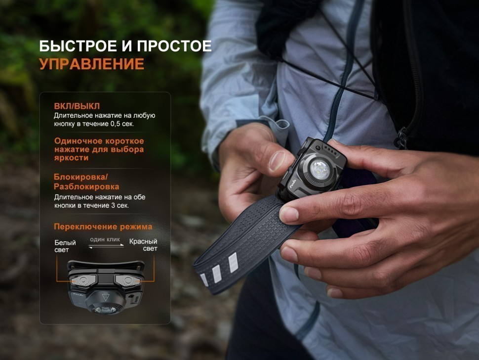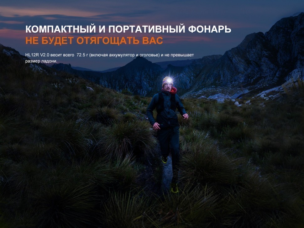 Fenix HL12R V2.0 — легкий и удобный налобный фонарь, который отлично подойдет для тренировок на открытом воздухе, бега, походов, кемпинга, рыбалки и охоты. Также пригодится для повседневного использования и ремонта. Регулируемый угол наклона позволяет точно настроить луч света, а легкий вес 72.5 г не утяжелит вашу экипировку, сделает тренировки и путешествия более комфортными.