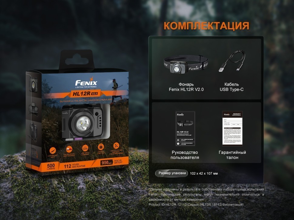 - комплектация — налобный фонарь HL12R V2.0 серый, кабель USB Type-C, руководство пользователя, гарантийный талон;