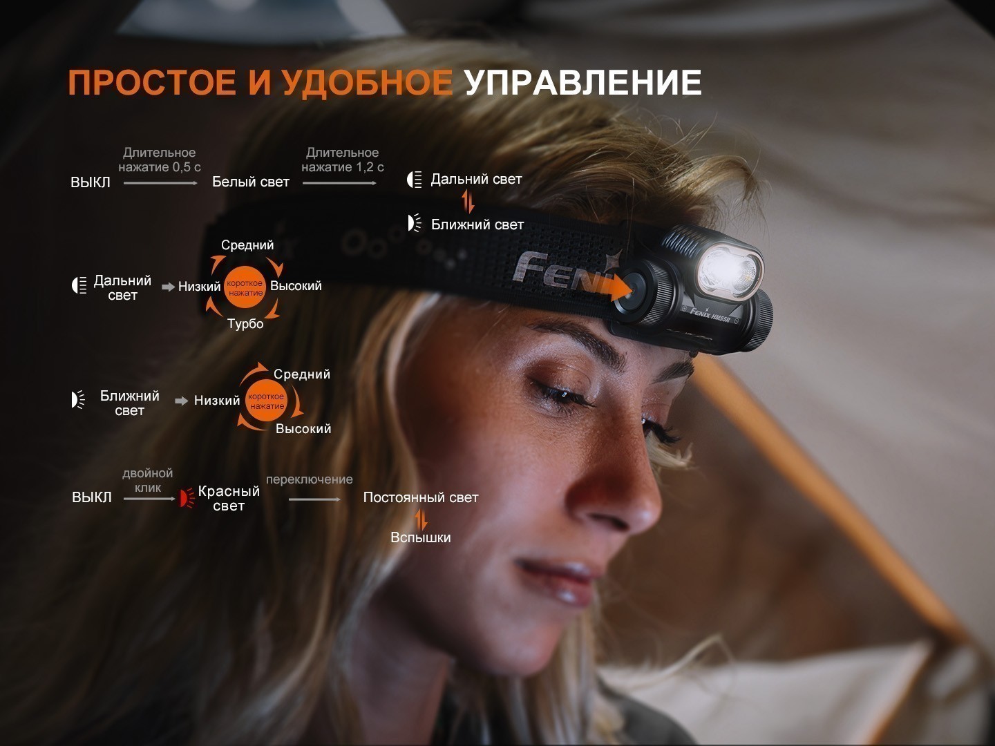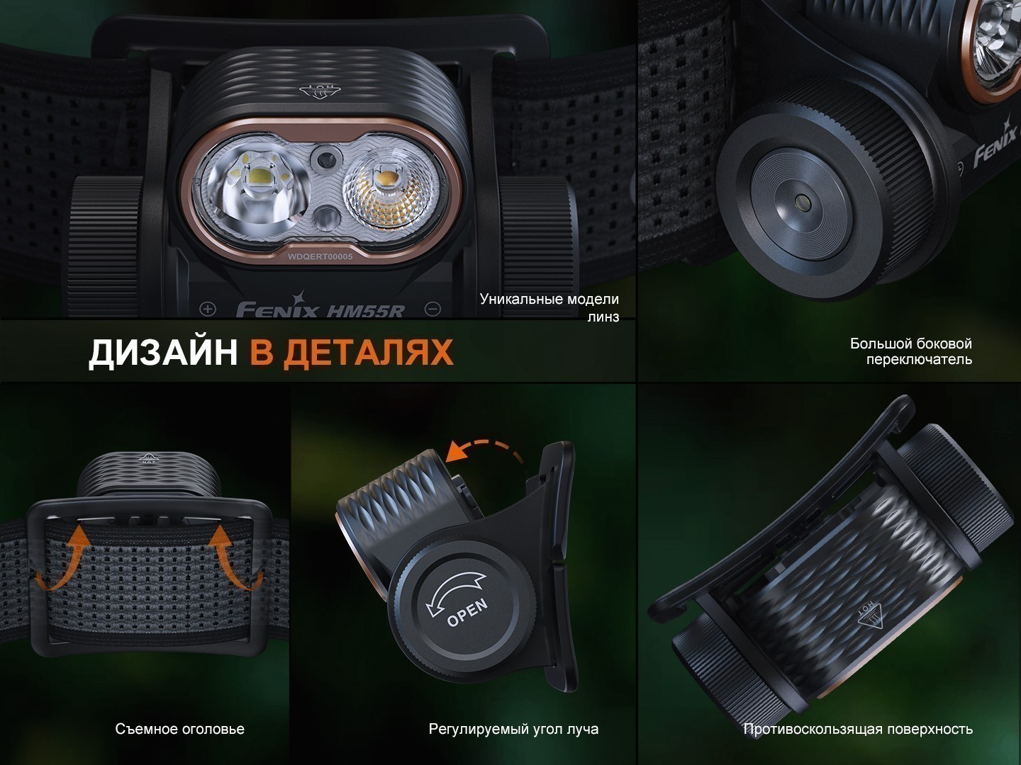 Благодаря сочетанию компактности, мощности, надежной защиты и долгого времени работы Fenix HM55R станет надежным спутником в путешествиях, занятиях спортом и повседневной жизни.