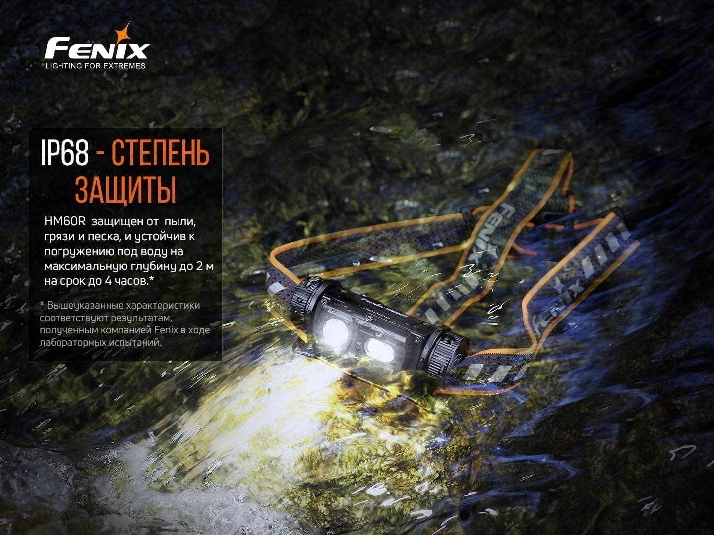 | Комплектация | Фонарь Fenix HM60R, аккумулятор Fenix ARB-L18-3400 Li-ion,кабель для зарядки USB Type-C, запасное уплотнительное кольцо, инструкция, гарантийный талон. |