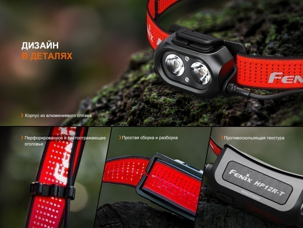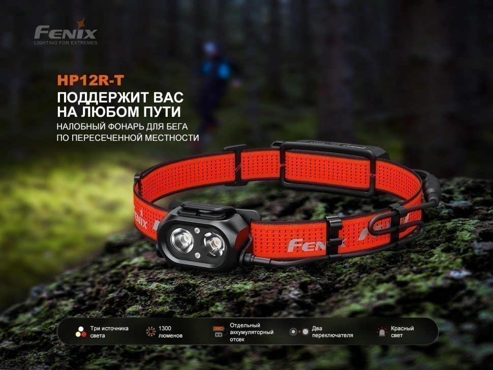 Fenix HP12R‑T — это удобный и функциональный фонарь, предназначенный для бегунов, туристов, альпинистов, рыбаков, специалистов по техническому обслуживанию. Он отлично справляется с задачами освещения в условиях плохой видимости. Благодаря прочному корпусу, мощному световому потоку и удобной системе ношения, фонарь является отличным выбором для длительных ночных маршрутов и бега.