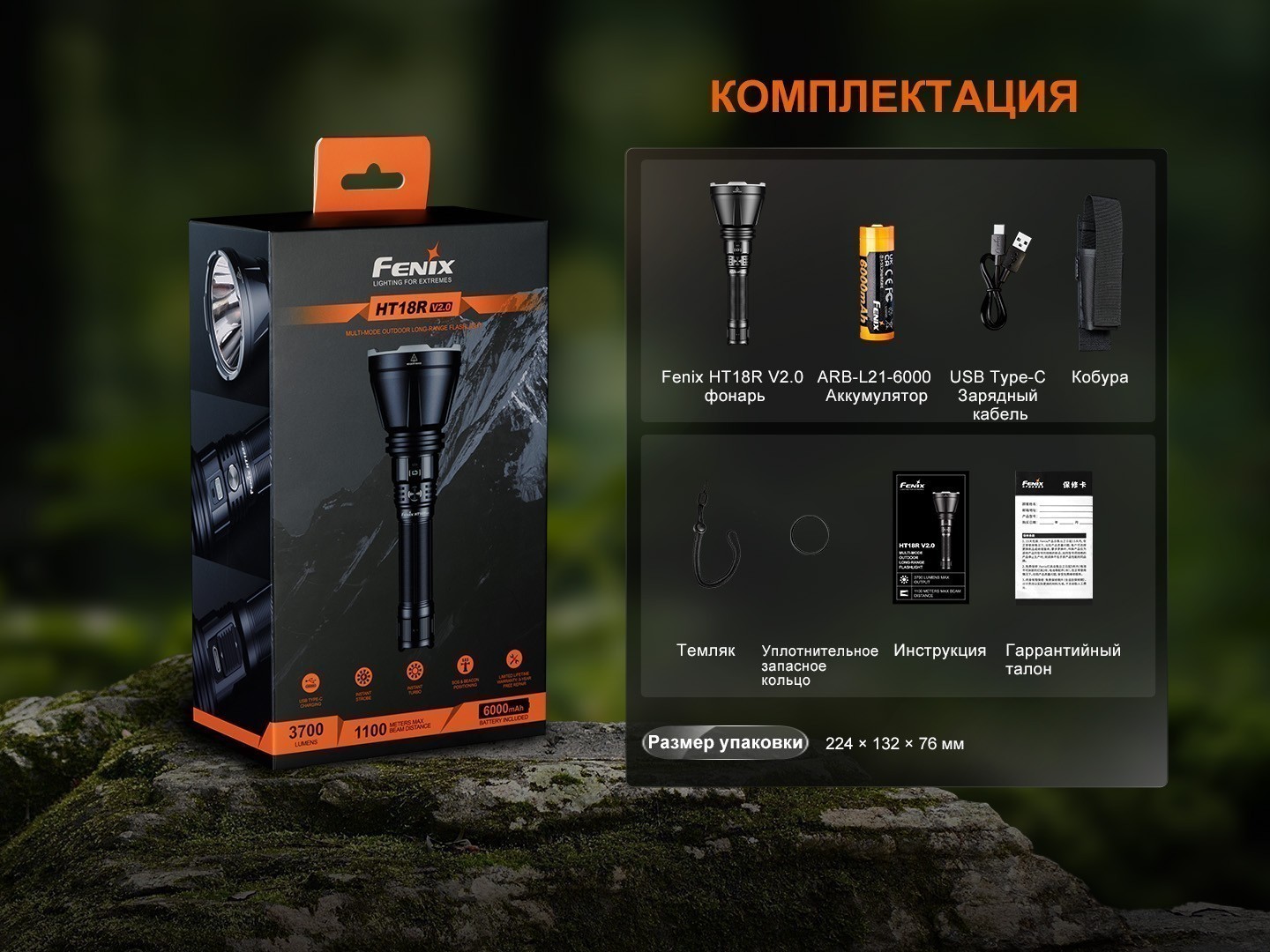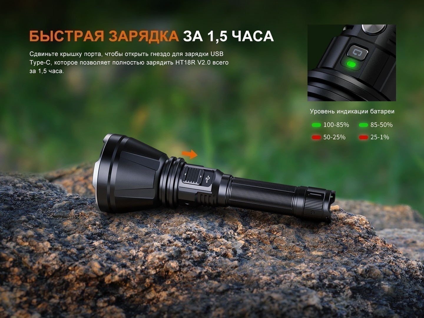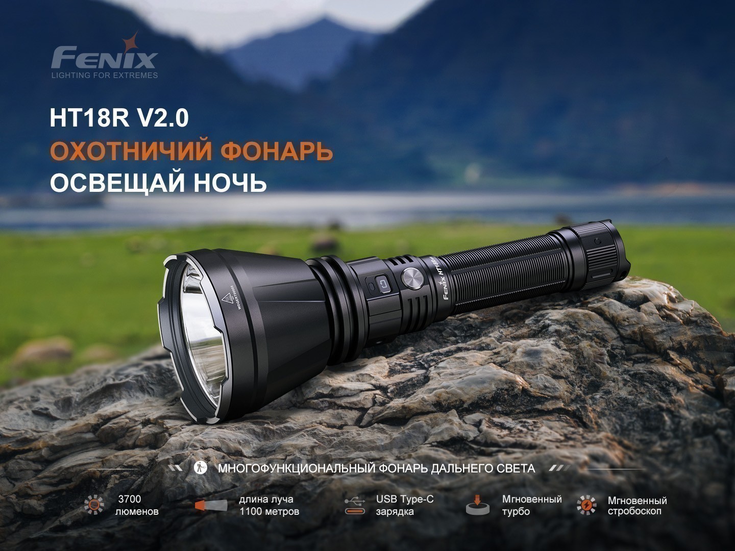 Фонарь Fenix HT18R V2.0 — это универсальный, надёжный и мощный световой инструмент. Это светодиодный фонарь с отличной яркостью (3700 люмен), выдающей дальностью (1100 м), созданный как охотничий и поисковый фонарь. Он справится с задачами ночной охоты, поисковых работ, туризма или самообороны. Если нужен серьёзный дальнобойный фонарь или подствольный фонарь для охоты — HT18R V2.0 станет надёжным выбором.