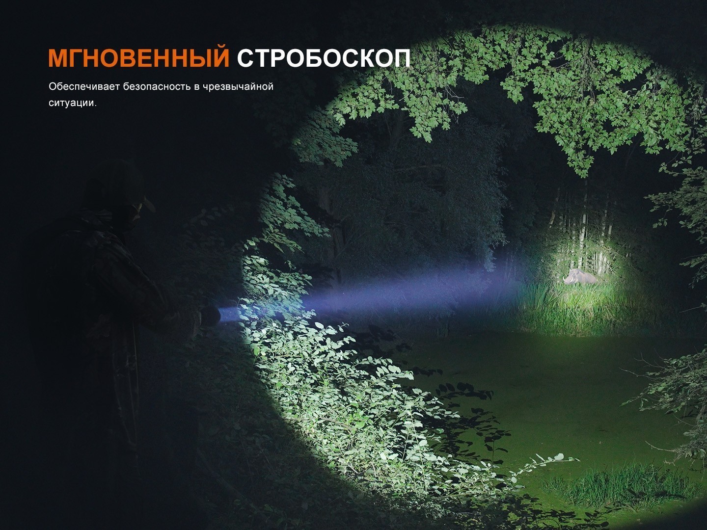 Максимальная яркость фонаря Fenix HT18R V2.0 достигает 3700 люмен, что обеспечивает уверенное освещение даже на дальних дистанциях. Луч легко «пробивает» темноту на расстояние до 1100 метров, что актуально именно для дальнобойного фонаря. Свет исходит от светодиода Luminus SFT70 — надёжного и долговечного источника света.