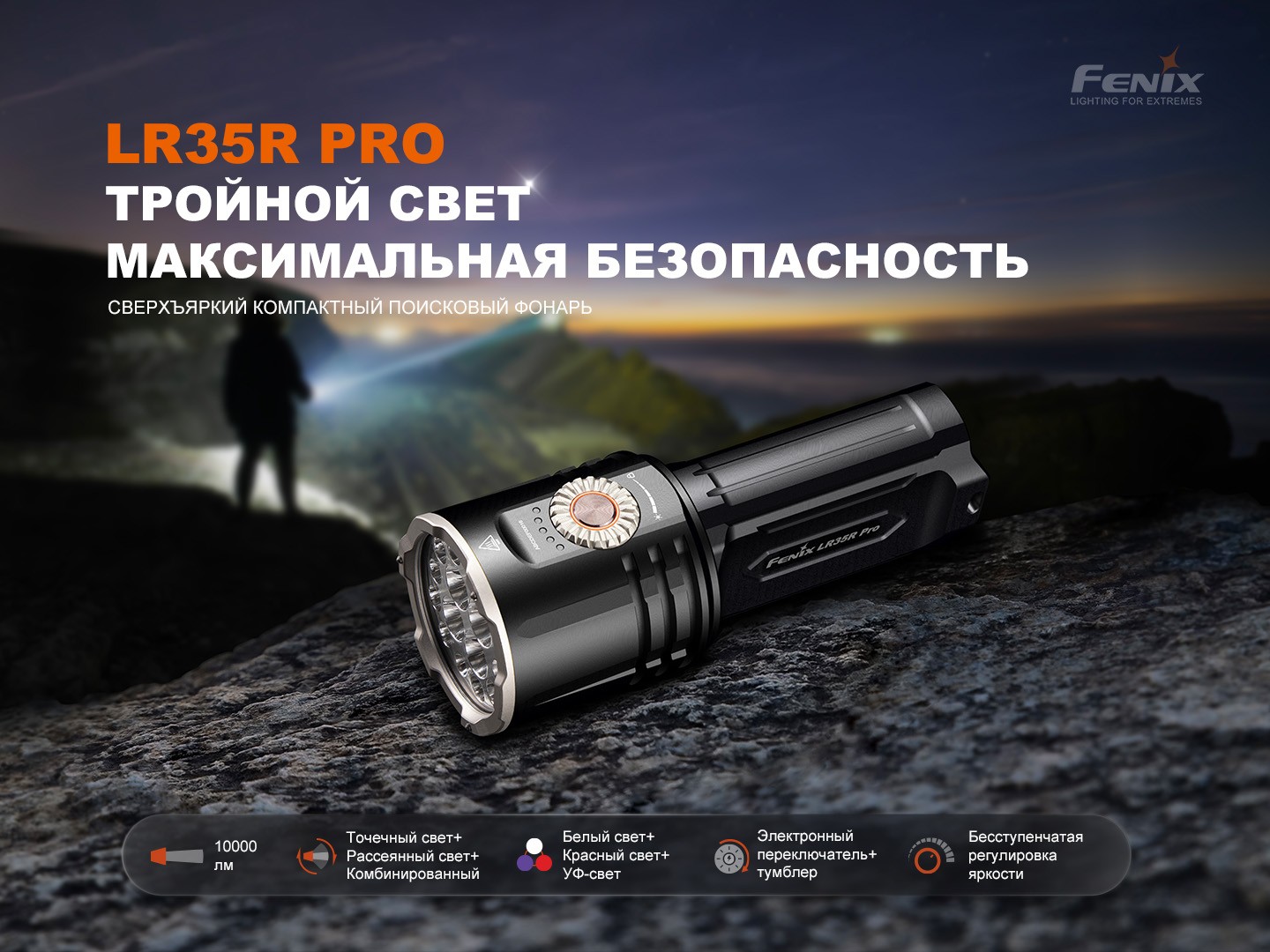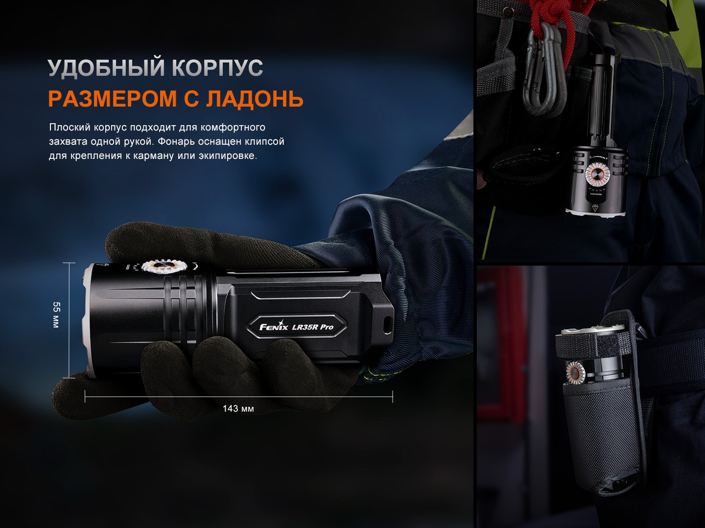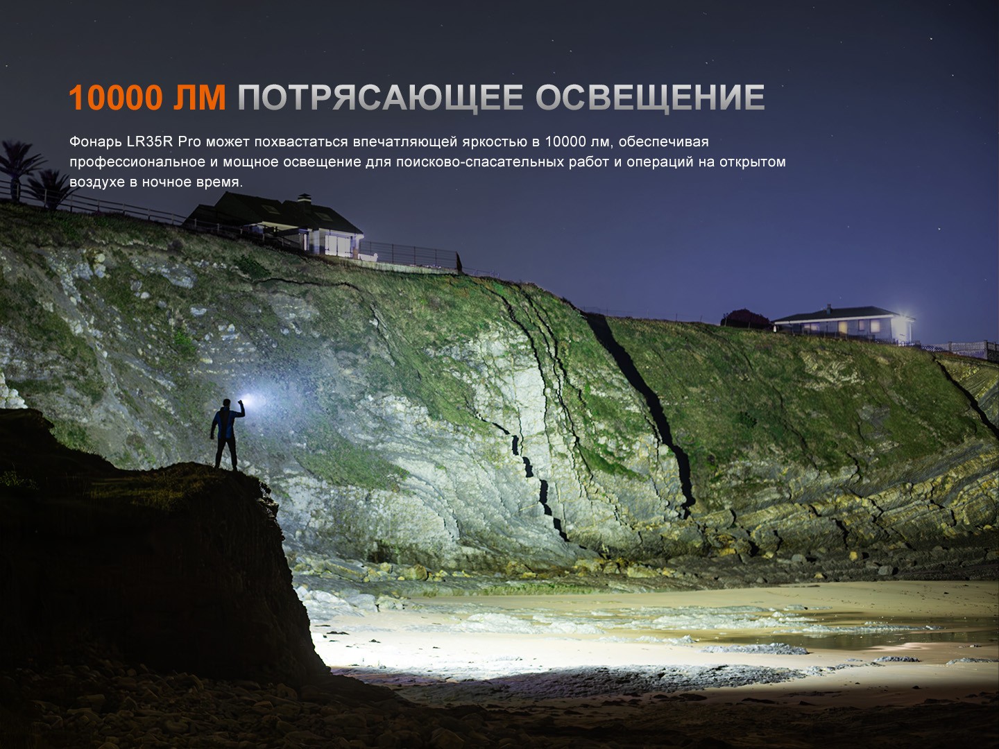 Fenix LR35R Pro — это мощный и надежный многофункциональный фонарь. Его выбирают спасатели, туристы, спелеологи и профессионалы, которым нужен компактный, но чрезвычайно яркий инструмент для работы и экстремальных задач.