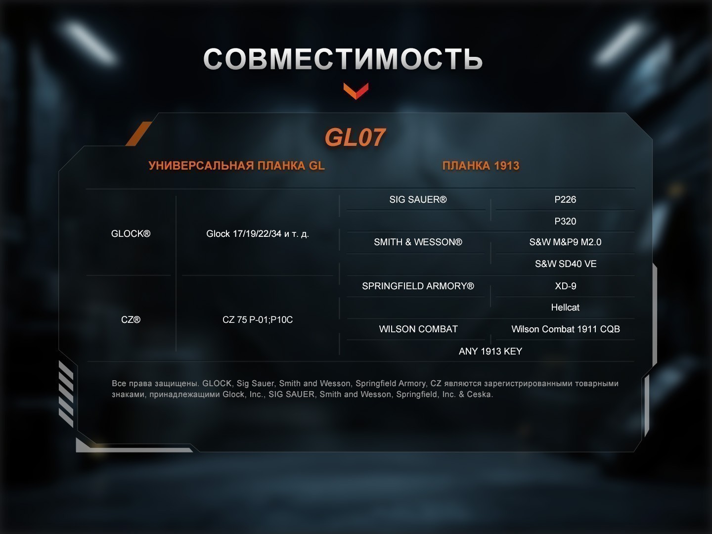 | Комплектация | Фонарь Fenix GL07, аккумулятор ARB-L16-800UP, зарядный кабель USB Type-C, запасная планка 1913, запасное уплотнительное кольцо, руководство пользователя, гарантийный талон | |||||||||||||