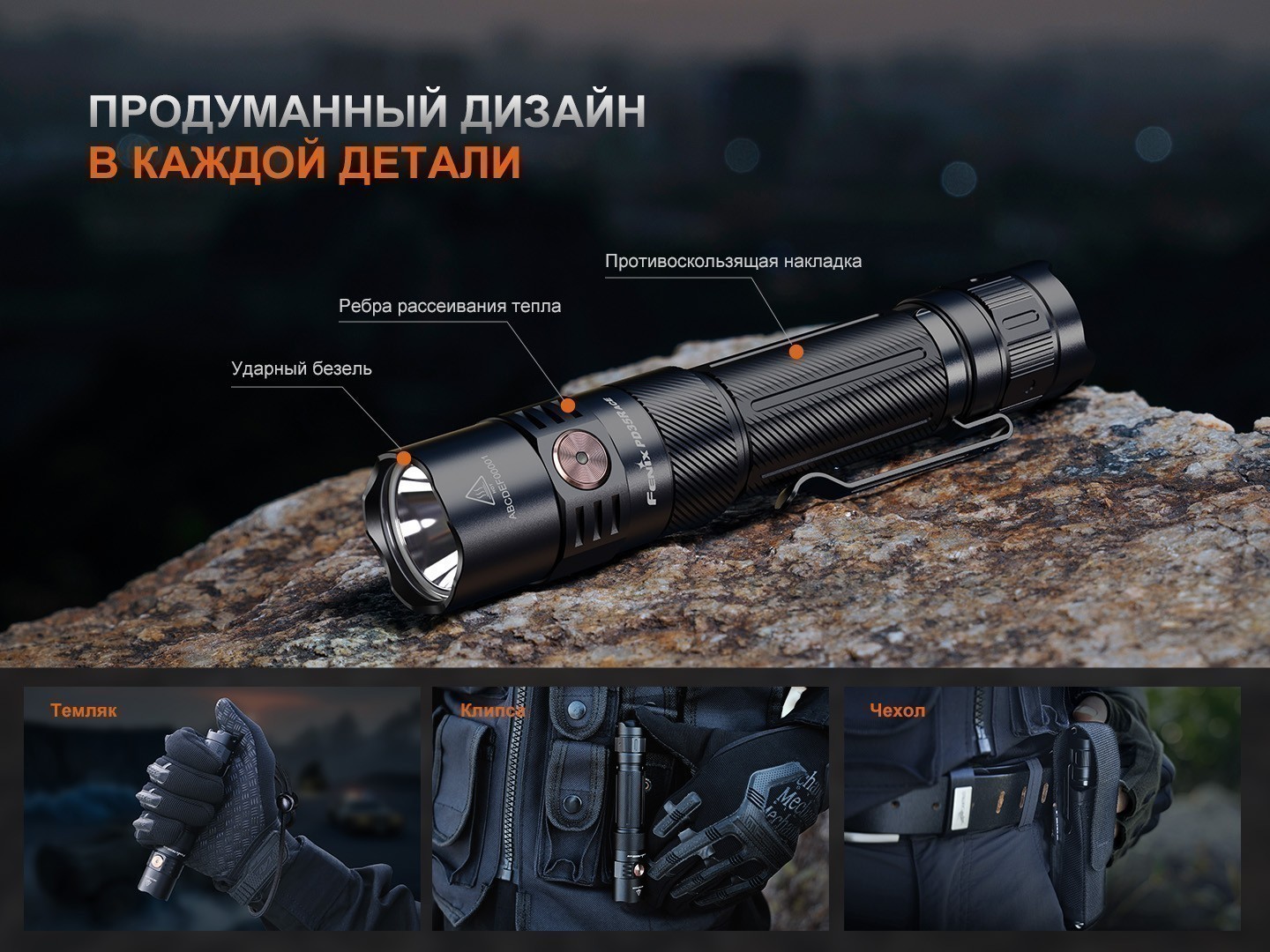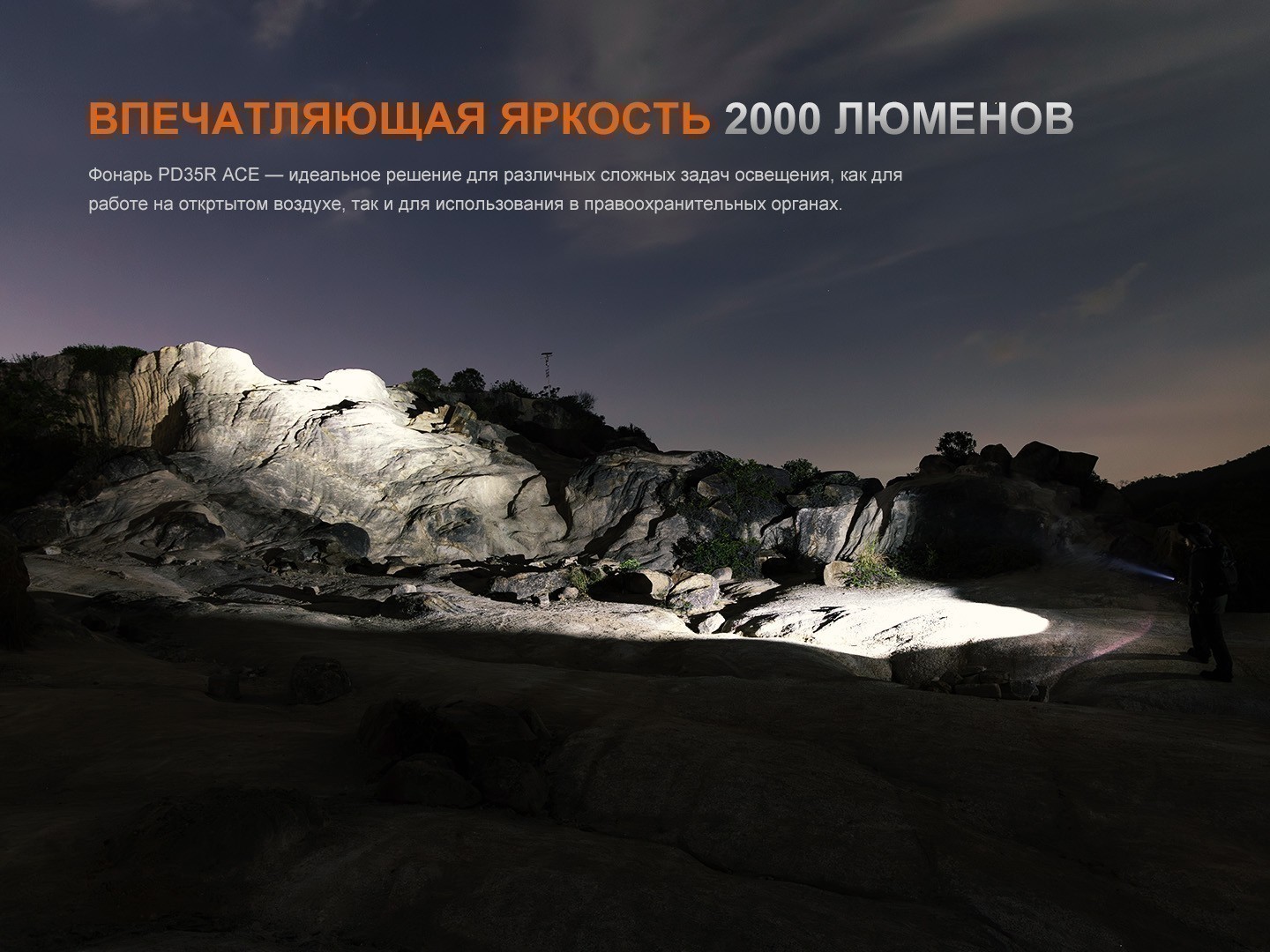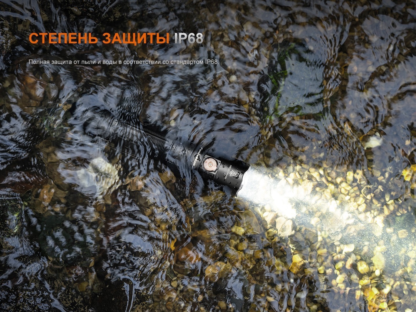 PD35R ACE имеет степень защиты IP68, полностью защищен от воды и пыли, выдерживает падения с высоты до 1,5 метра. Это один из самых продвинутых тактических фонарей в линейке Fenix, сочетающий высокую мощность, гибкое управление и долгую автономность.