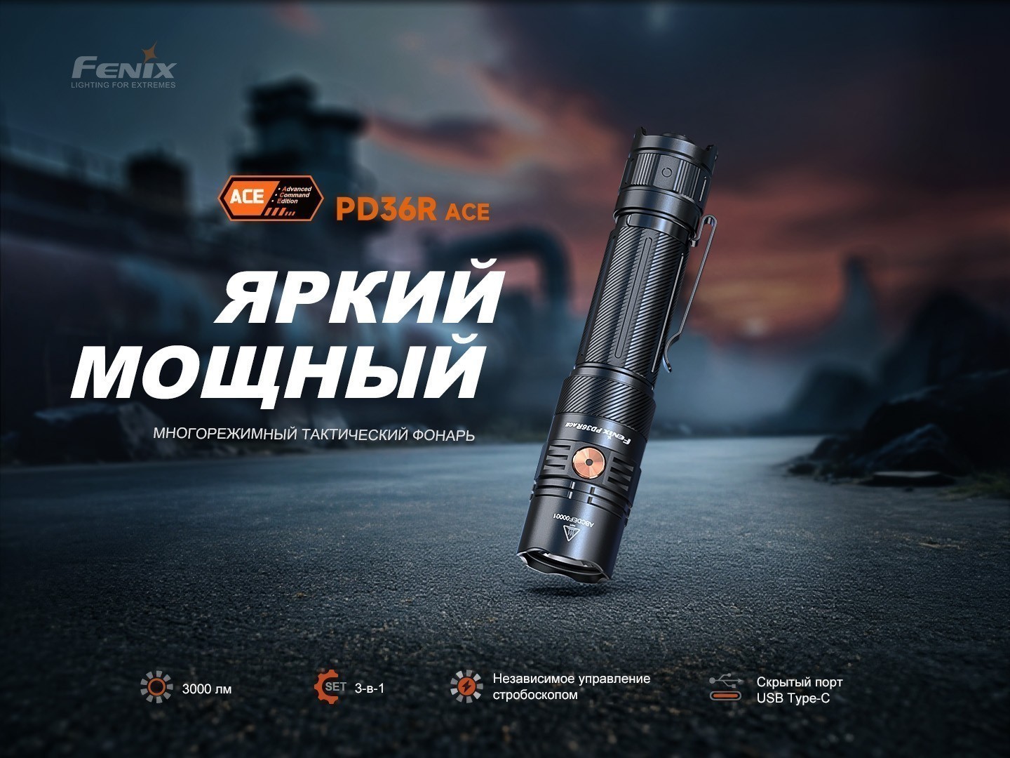 | Фонарь Fenix тактический Fenix PD36R ACE 3000 люменов | |||||||
