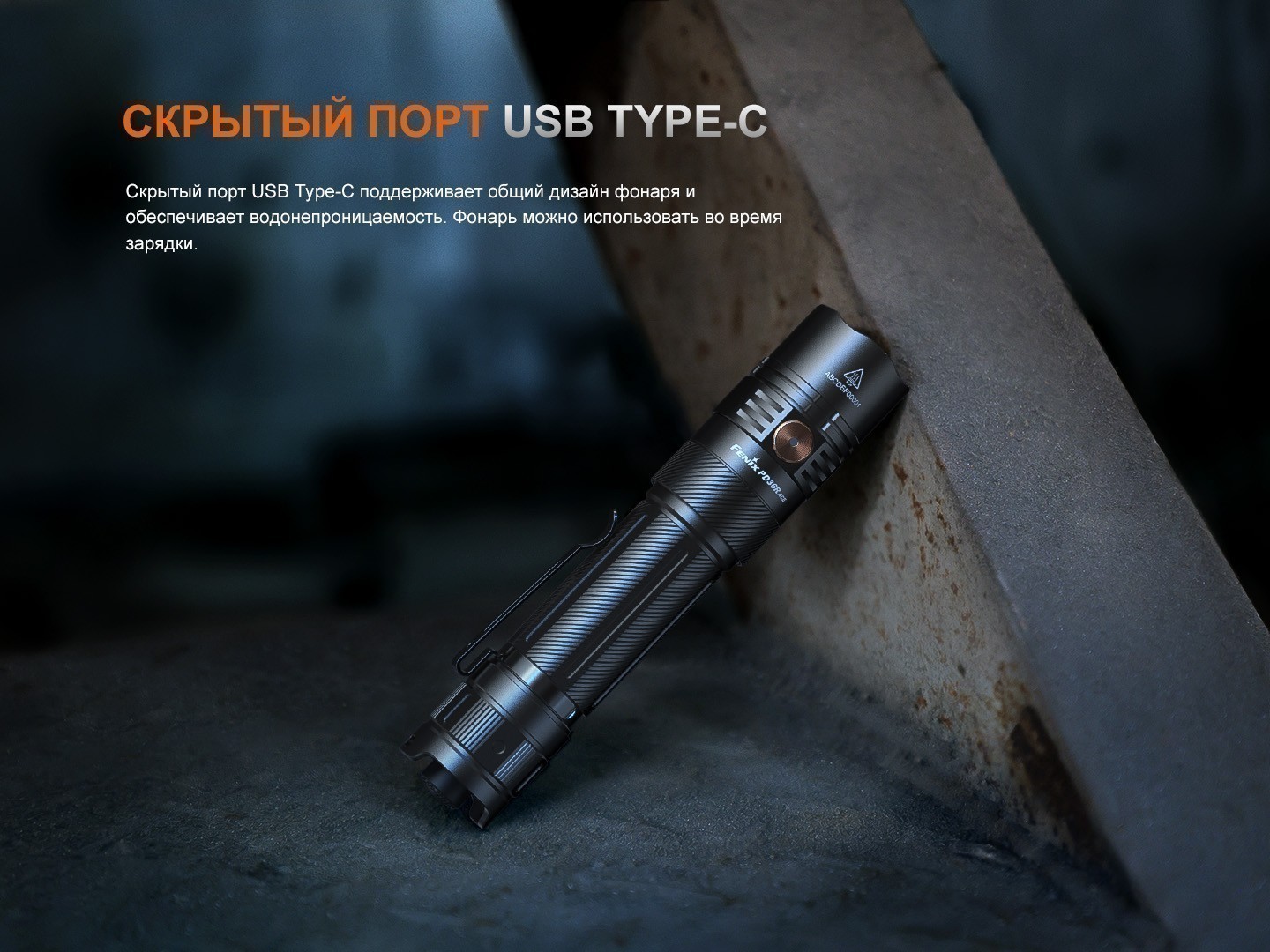 Питание: фонарь работает от перезаряжаемого аккумулятора Fenix ARB-L21-5000 V2.0 (формат 21700, 5000 мАч), который входит в комплект.Зарядка производится через скрытый порт USB-C, полный цикл занимает около 3 часов. При этом есть индикация уровня заряда при включении фонаря, что позволяет быстро оценить, сколько энергии осталось.