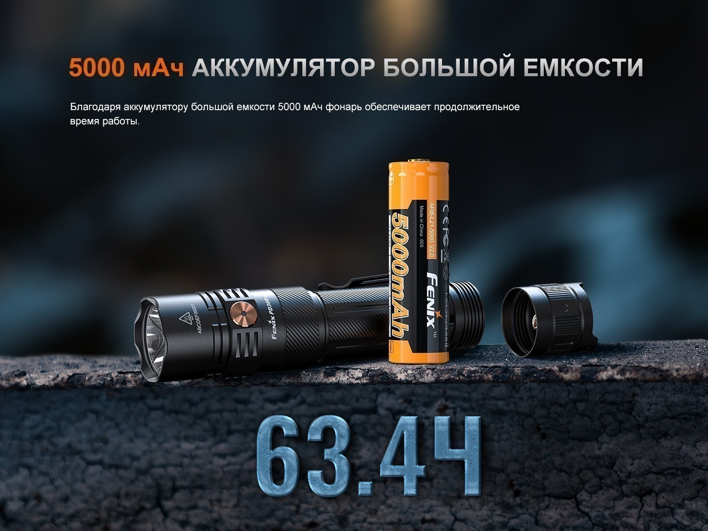 - Аккумулятор: Fenix ARB-L21-5000 V2.0 (21700, 5000 мАч)