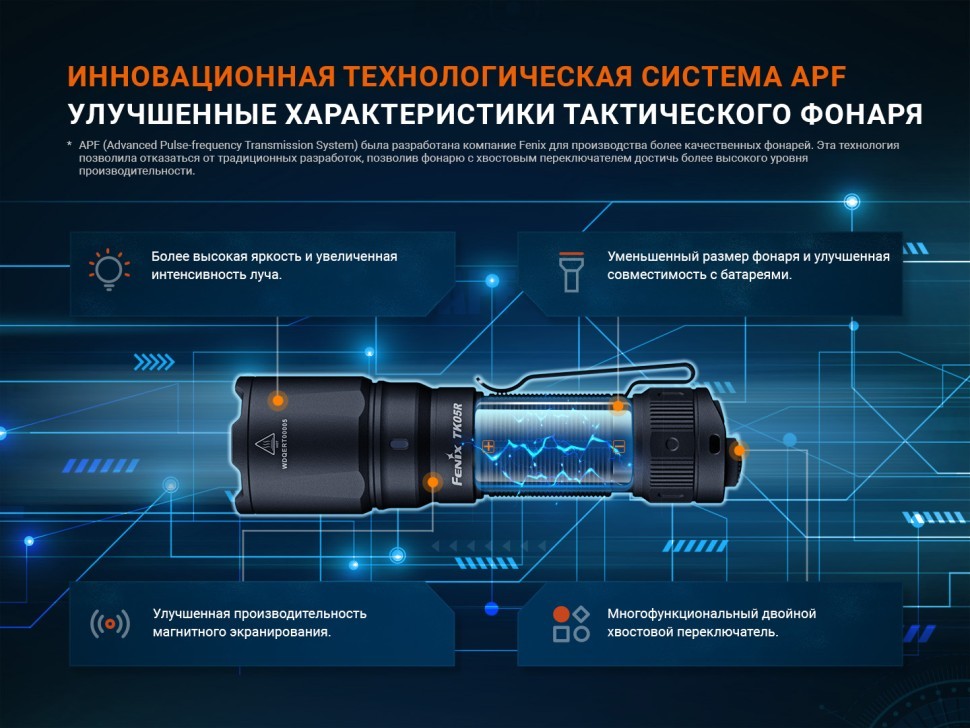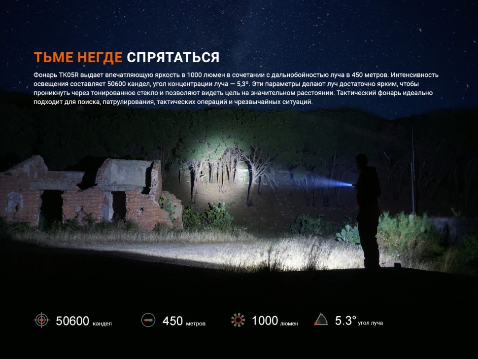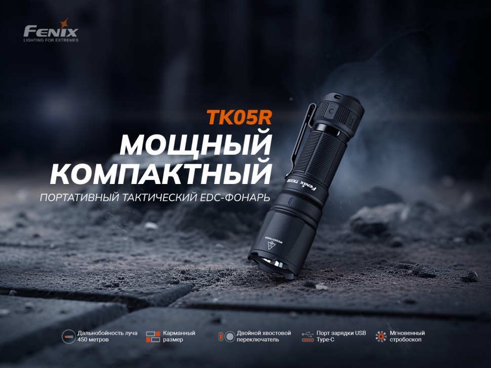 Фонарь Fenix тактический TK05R предназначен для широкого спектра профессиональных задач: охрана, патрулирование, поисково-спасательные операции, а также для повседневного ношения в качестве EDC фонаря. Благодаря компактному размеру и высокому уровню яркости, мощный тактический фонарь обеспечивает исключительную видимость в условиях низкой освещенности.