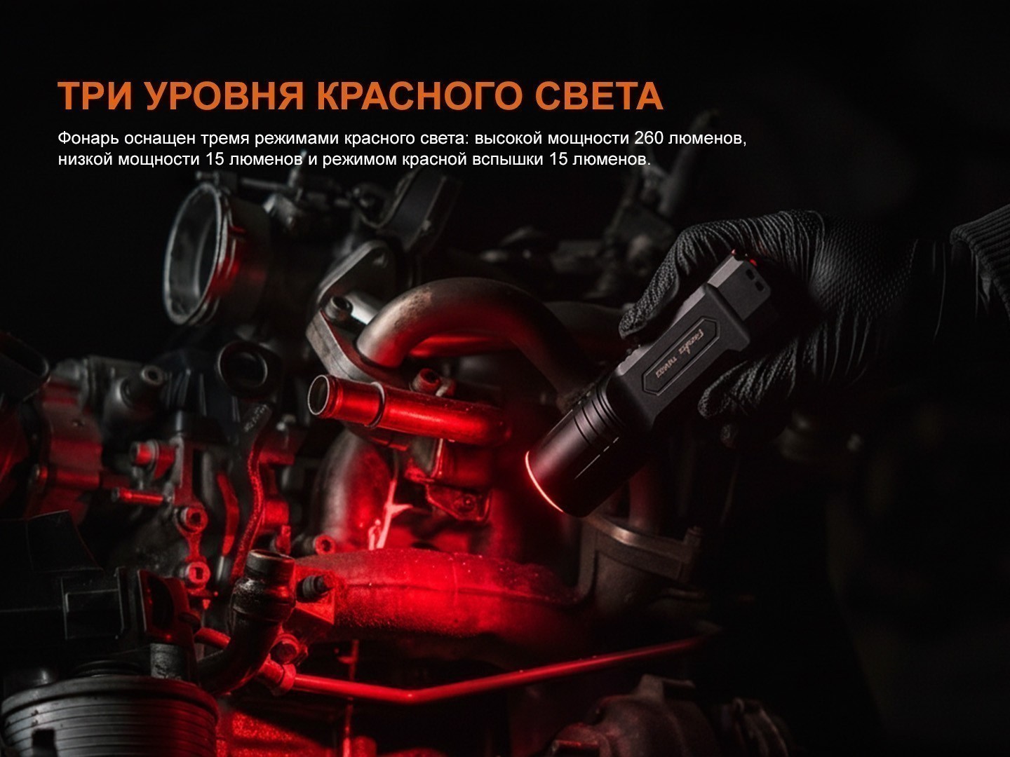 Эта лимитированная модификация отличается наличием режима красного света, который пришёл на смену ультрафиолетовому. Красное освещение помогает сохранять адаптацию зрения в темноте и делает фонарь особенно полезным для ночных наблюдений, рыбалки и скрытных операций.