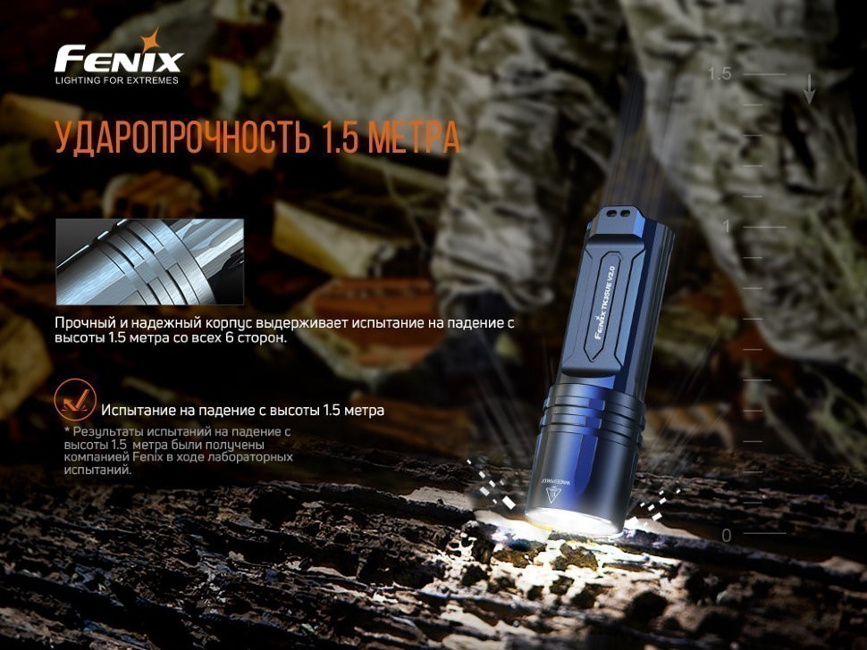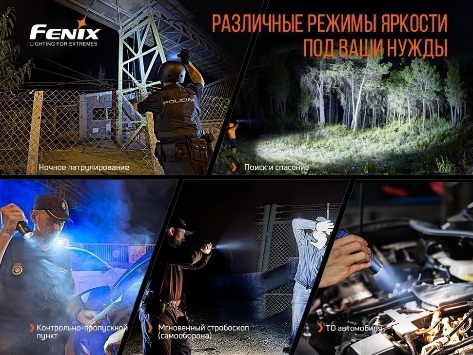 * Приведенные параметры работы модели были получены в ходе лабораторных опытов. Где были следующие условия: использовали один литий-ионный аккумулятор Fenix ARB-L 18-3000P, температура достигала 21 +- 3 градуса Цельсия, а влажность была порядка 50%-80%. Реальные показатели работы фонаря могут варьировать в зависимости от разных условий внешней среды и задействованного аккумулятора.
