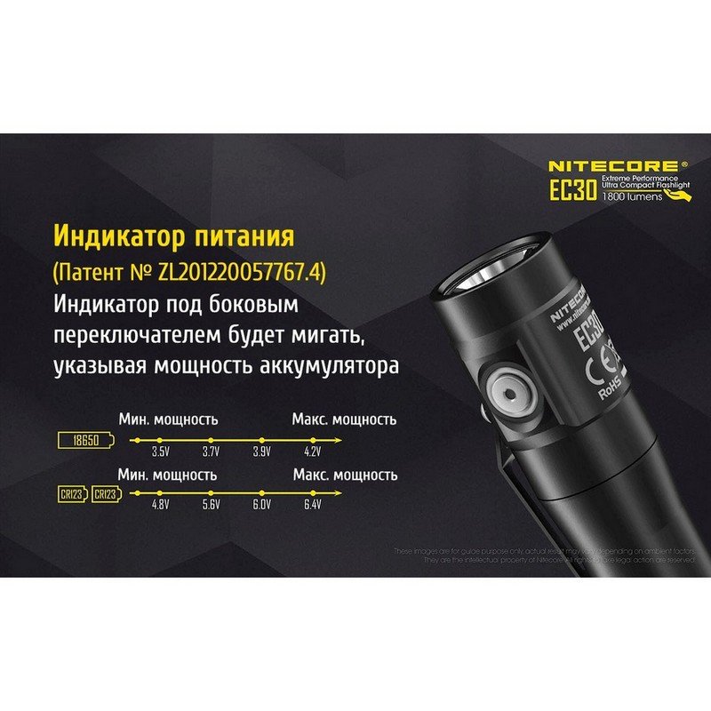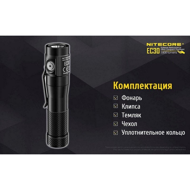 Практичный, небольшой и главное мощный фонарь от компании Nitecore – EC30. Главным преимуществом данной модели осветительного устройства, является его невероятно компактный размер, который можно сравнить с размером аккумулятора 18650 и мощность – составляющая целых 1800 люмен.